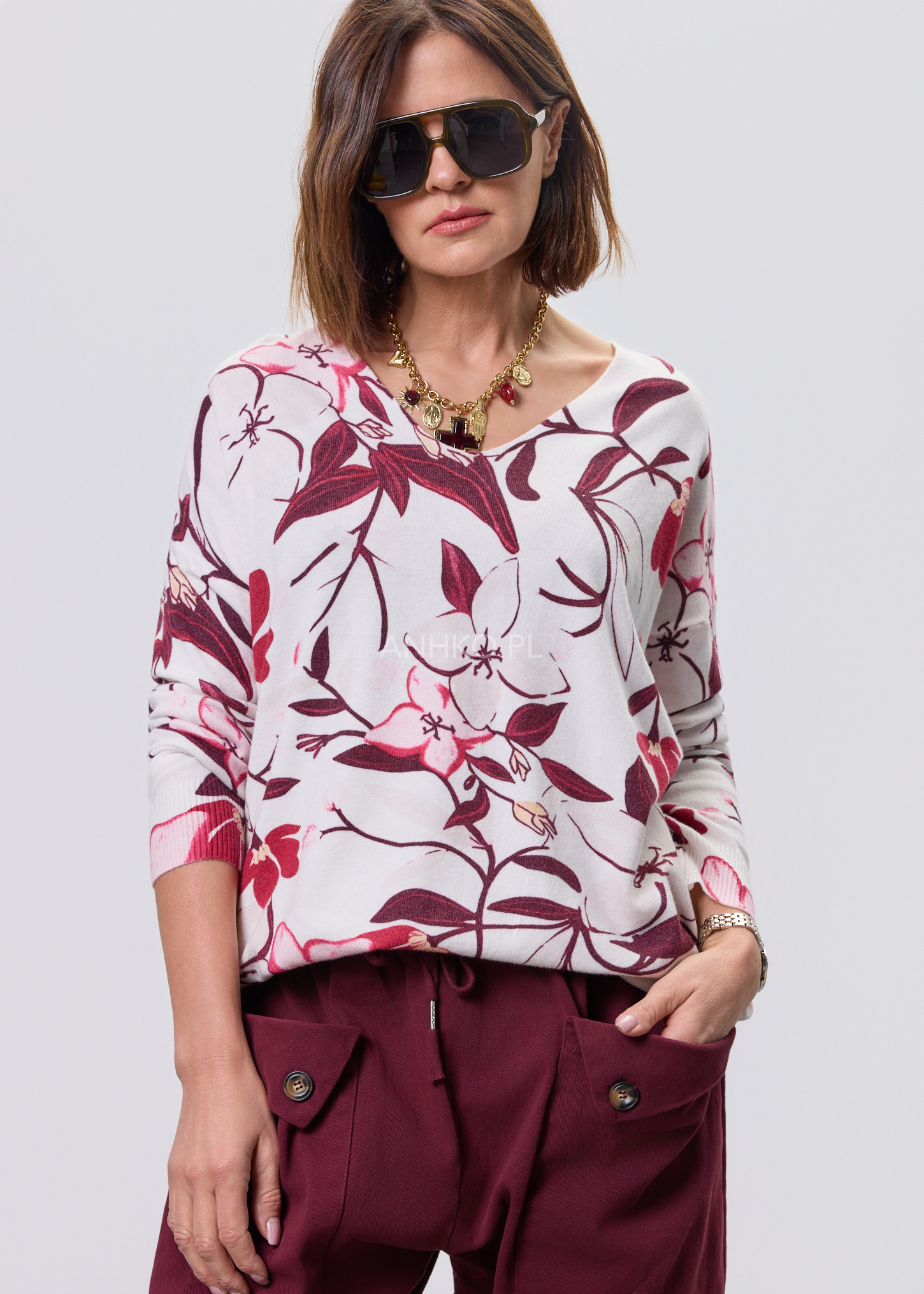 Stylowa sweter damski o swobodnym kroju, zaprojektowana z myślą o komforcie i uniwersalności. Model posiada dekolt w kształcie litery V, który subtelnie wysmukla sylwetkę oraz długie rękawy zakończone delikatnym ściągaczem. Miękki, elastyczny materiał dobrze dopasowuje się do ciała, nie krępując ruchów. sweter nie posiada podszewki ani kieszeni, dzięki czemu zachowuje lekkość i naturalne układanie się na sylwetce. Doskonale sprawdzi się w zestawieniu z klasycznymi spodniami, spódnicą lub jeansami. Idealna na co dzień, do pracy, na spotkania, a także na mniej formalne wyjścia.