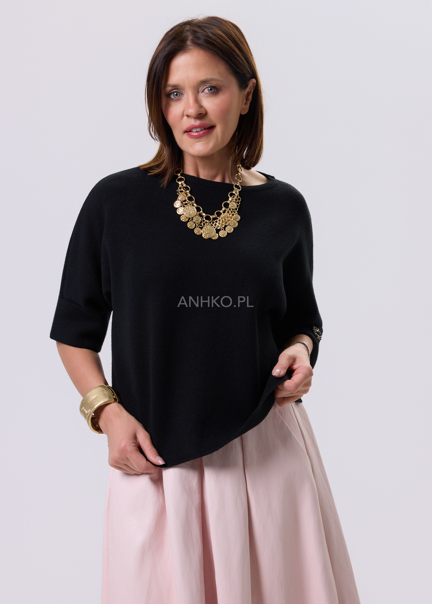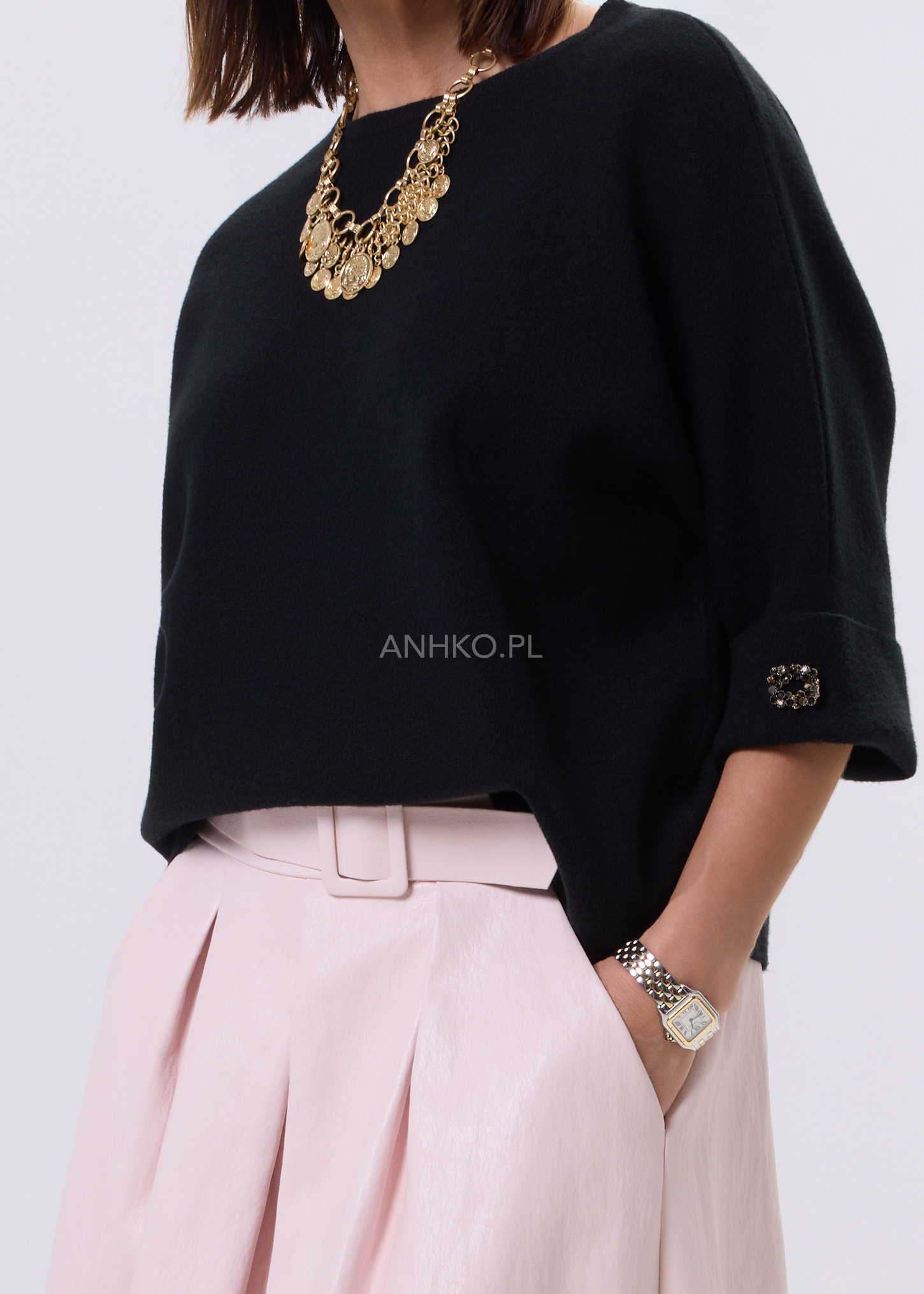 Ten wyjątkowy sweter wyróżnia się luźnym krojem, lekko opadającą linią ramion i szerokimi, komfortowymi rękawami z podwinięciem. Miękka i elastyczna dzianina pięknie układa się na sylwetce, zapewniając wygodę przez cały dzień. Brak podszewki sprawia, że model jest lekki, a jednocześnie przyjemnie otula. Idealny do codziennych stylizacji, pracy, spacerów czy weekendowych wyjść. Świetnie komponuje się z prostymi spodniami, legginsami, spódnicami midi oraz klasycznym płaszczem. To sweter, który można nosić zarówno w minimalistycznych zestawach, jak i w smart casualowych połączeniach na chłodniejsze dni.