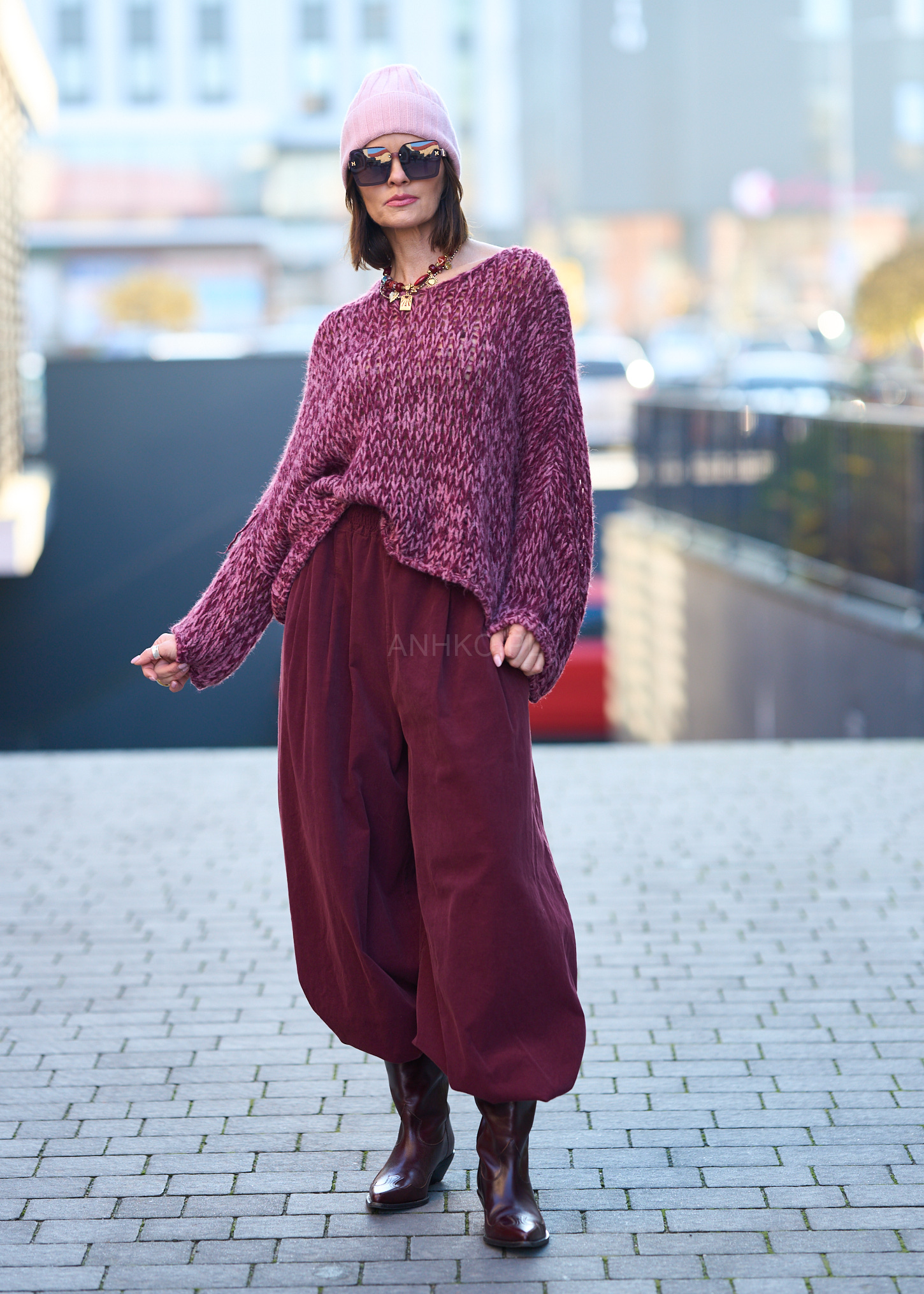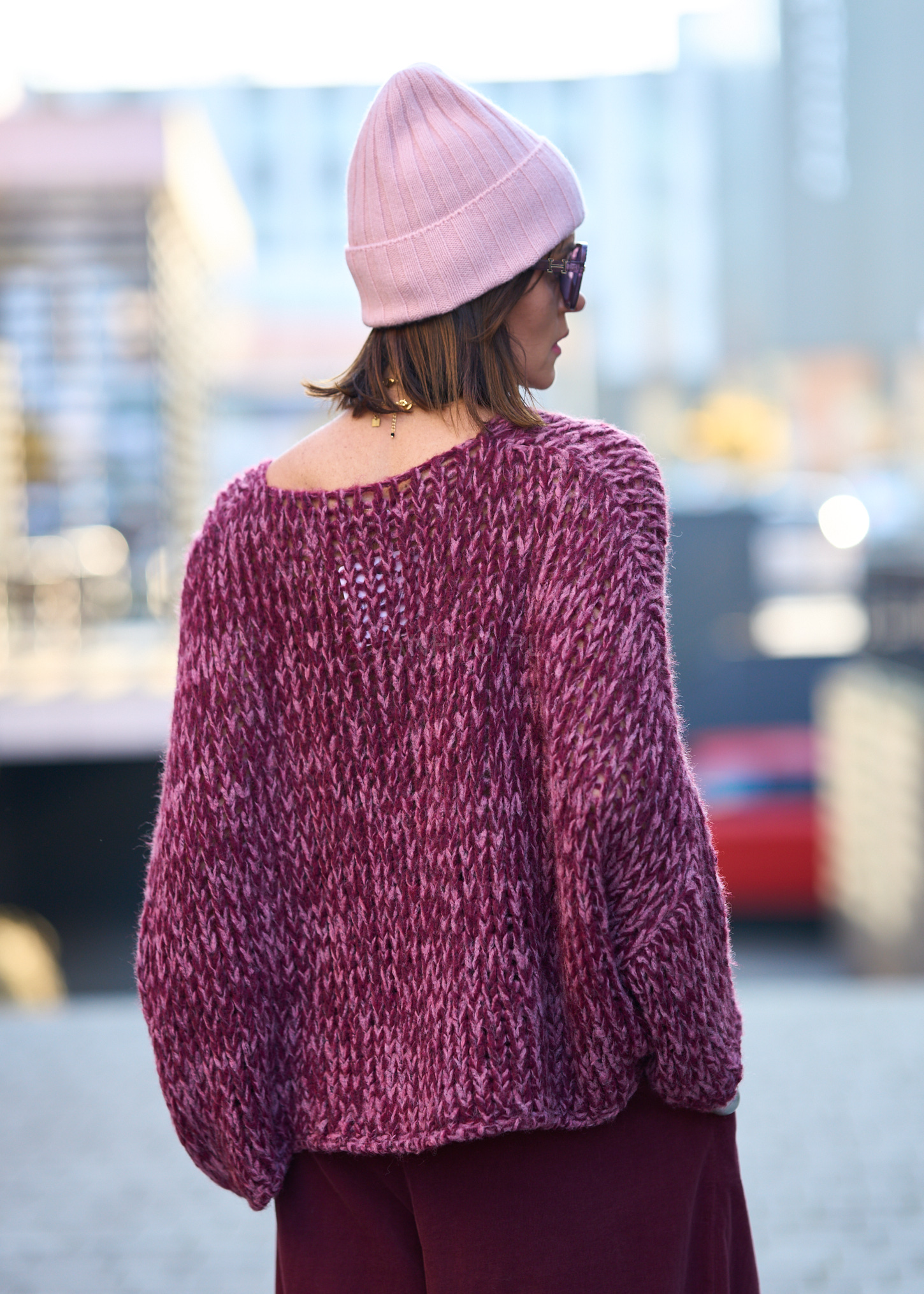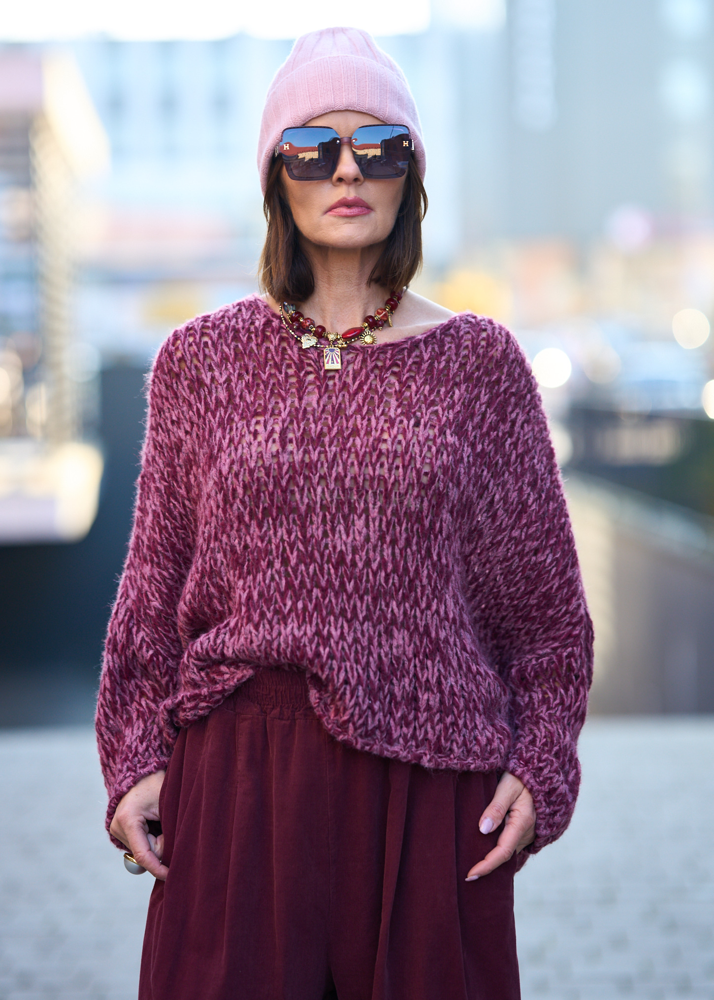 Ten oversize’owy sweter to połączenie komfortu, charakteru i włoskiego rzemiosła. Mięsista, grubo pleciona struktura nadaje mu wyrazisty wygląd, a luźny krój z obniżoną linią ramion zapewnia swobodę ruchów i nowoczesną sylwetkę. Idealnie sprawdzi się w codziennych stylizacjach – z jeansami, spodniami z szeroką nogawką lub spódnicą – ale również jako element warstwowych zestawów na chłodniejsze dni. To doskonały wybór na co dzień, do pracy w kreatywnym środowisku, spotkania czy weekendowe wyjścia.