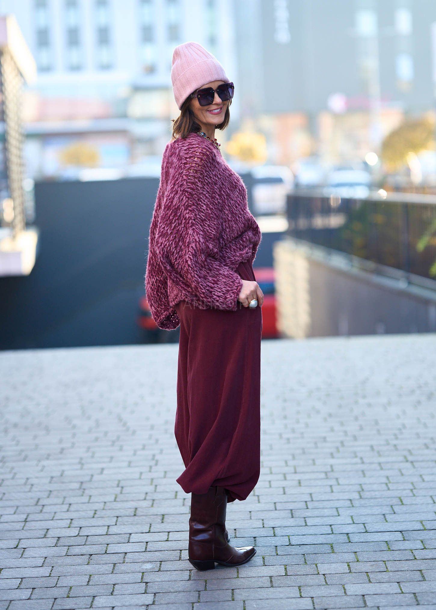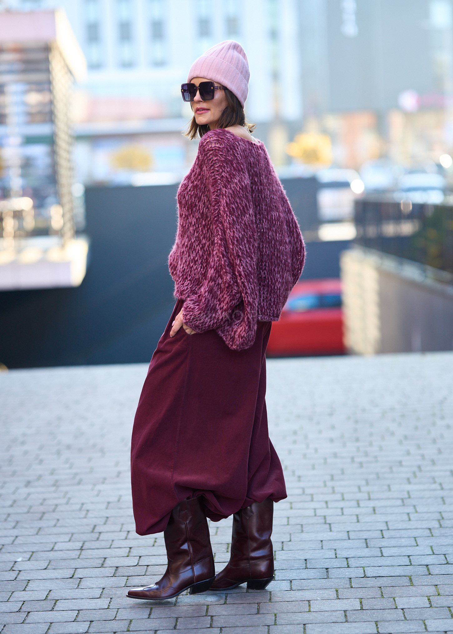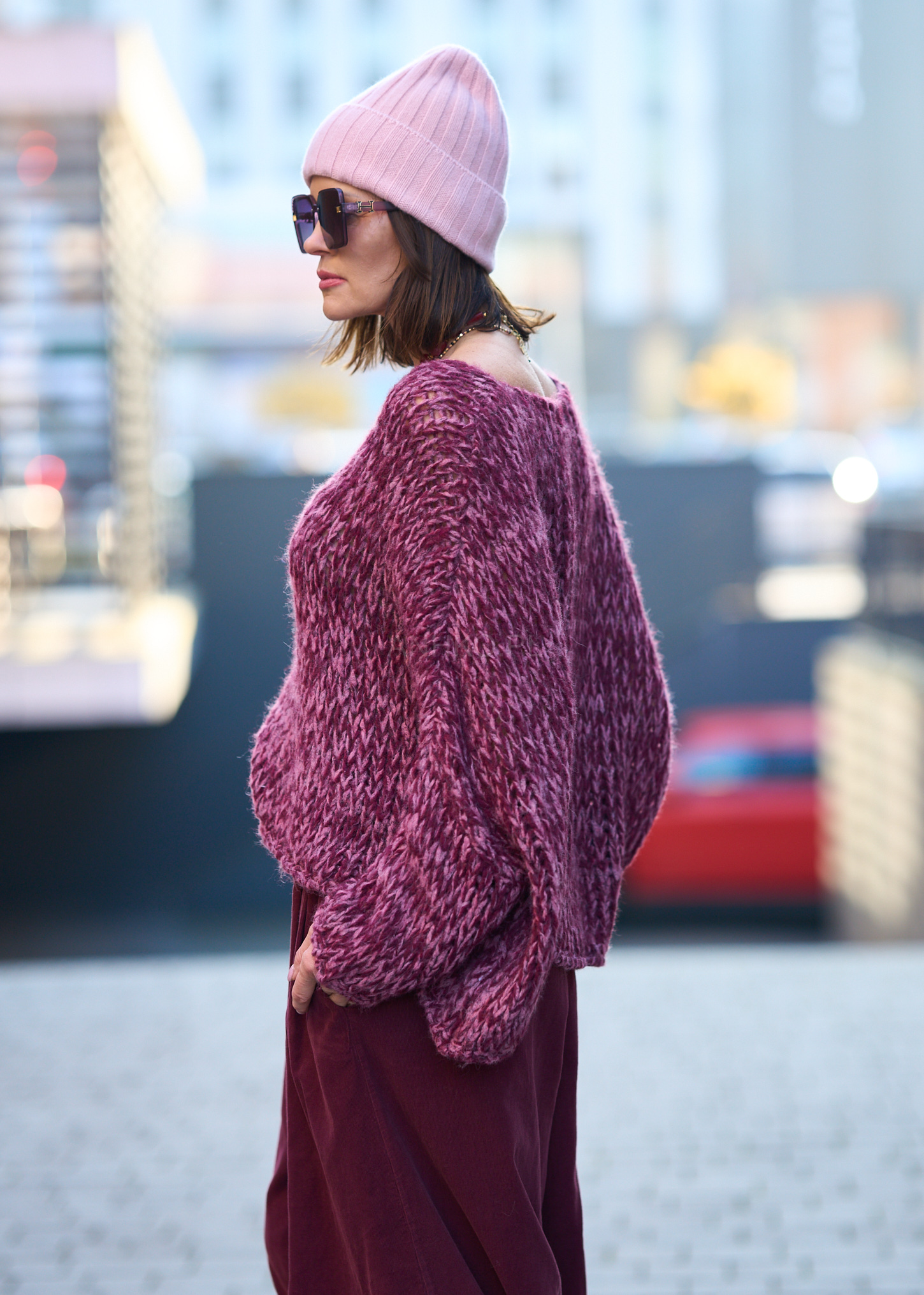 Ten oversize’owy sweter to połączenie komfortu, charakteru i włoskiego rzemiosła. Mięsista, grubo pleciona struktura nadaje mu wyrazisty wygląd, a luźny krój z obniżoną linią ramion zapewnia swobodę ruchów i nowoczesną sylwetkę. Idealnie sprawdzi się w codziennych stylizacjach – z jeansami, spodniami z szeroką nogawką lub spódnicą – ale również jako element warstwowych zestawów na chłodniejsze dni. To doskonały wybór na co dzień, do pracy w kreatywnym środowisku, spotkania czy weekendowe wyjścia.