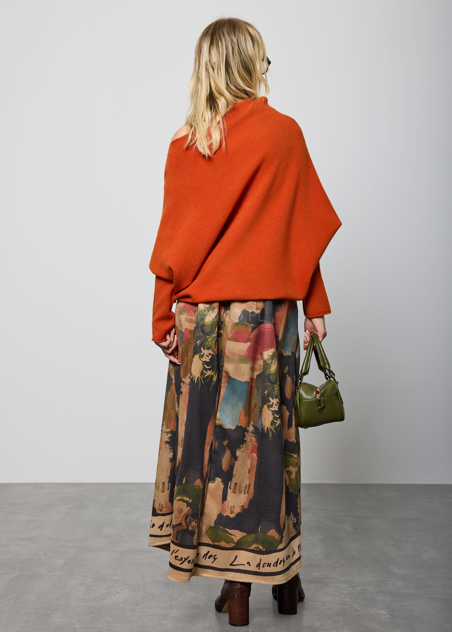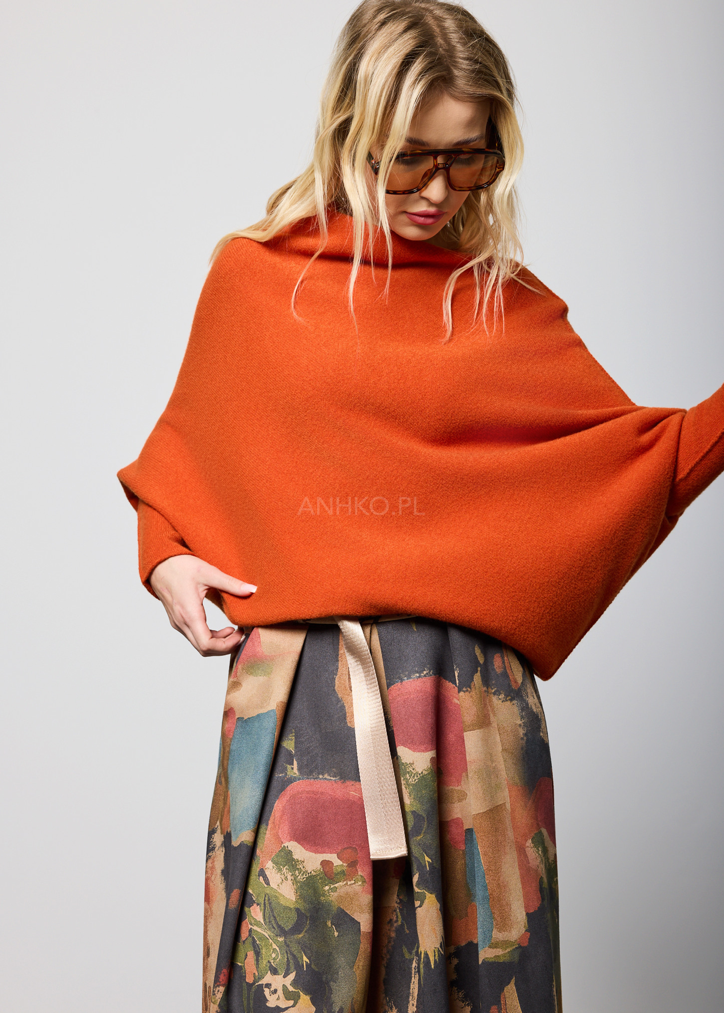 Ciepły ceglasty odcień nadaje stylizacji głębi i wyróżnia ją bez przesady. Oversize’owy fason zapewnia maksymalny komfort, a asymetryczny dół wprowadza nowoczesny akcent do klasycznej formy. Dekolt łódka dodaje elegancji, dzięki czemu sweter sprawdzi się zarówno w codziennych zestawach, jak i bardziej dopracowanych stylizacjach.