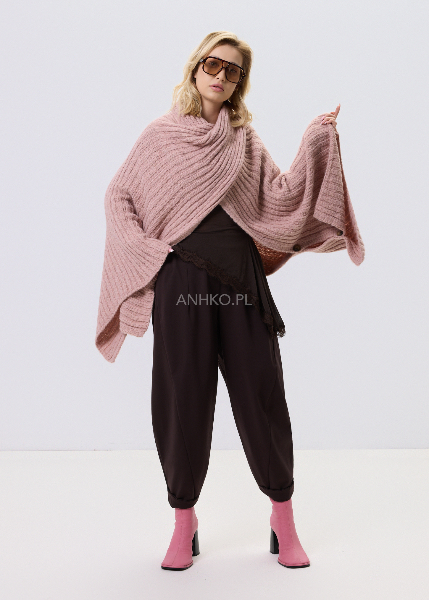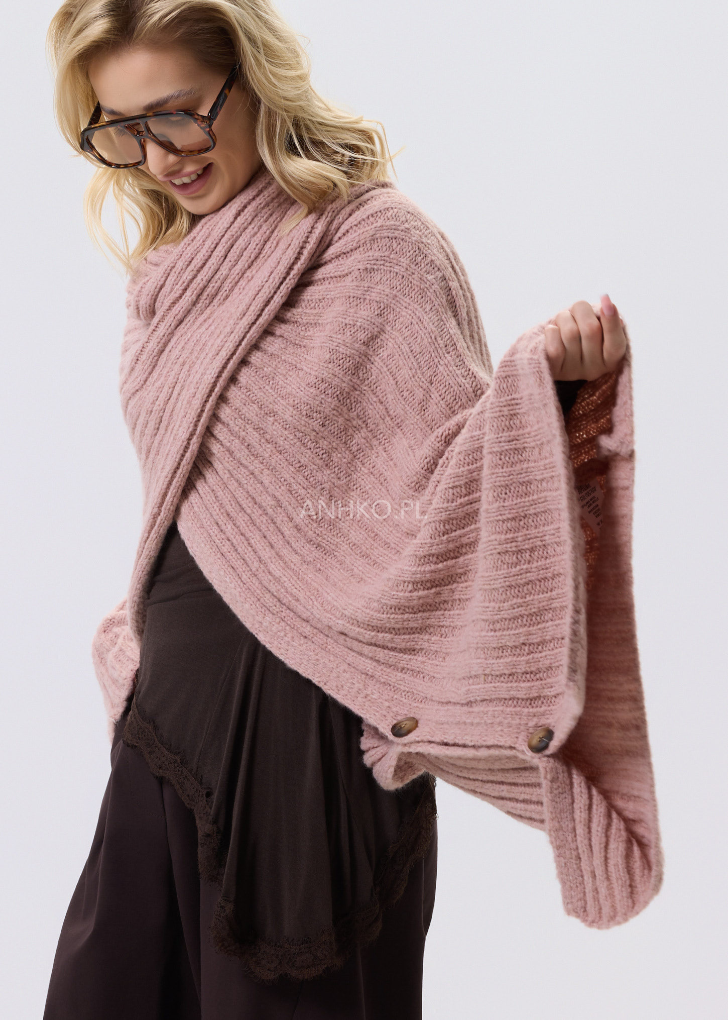 Sweter-Ponczo Arlene Pudrowo Różowy