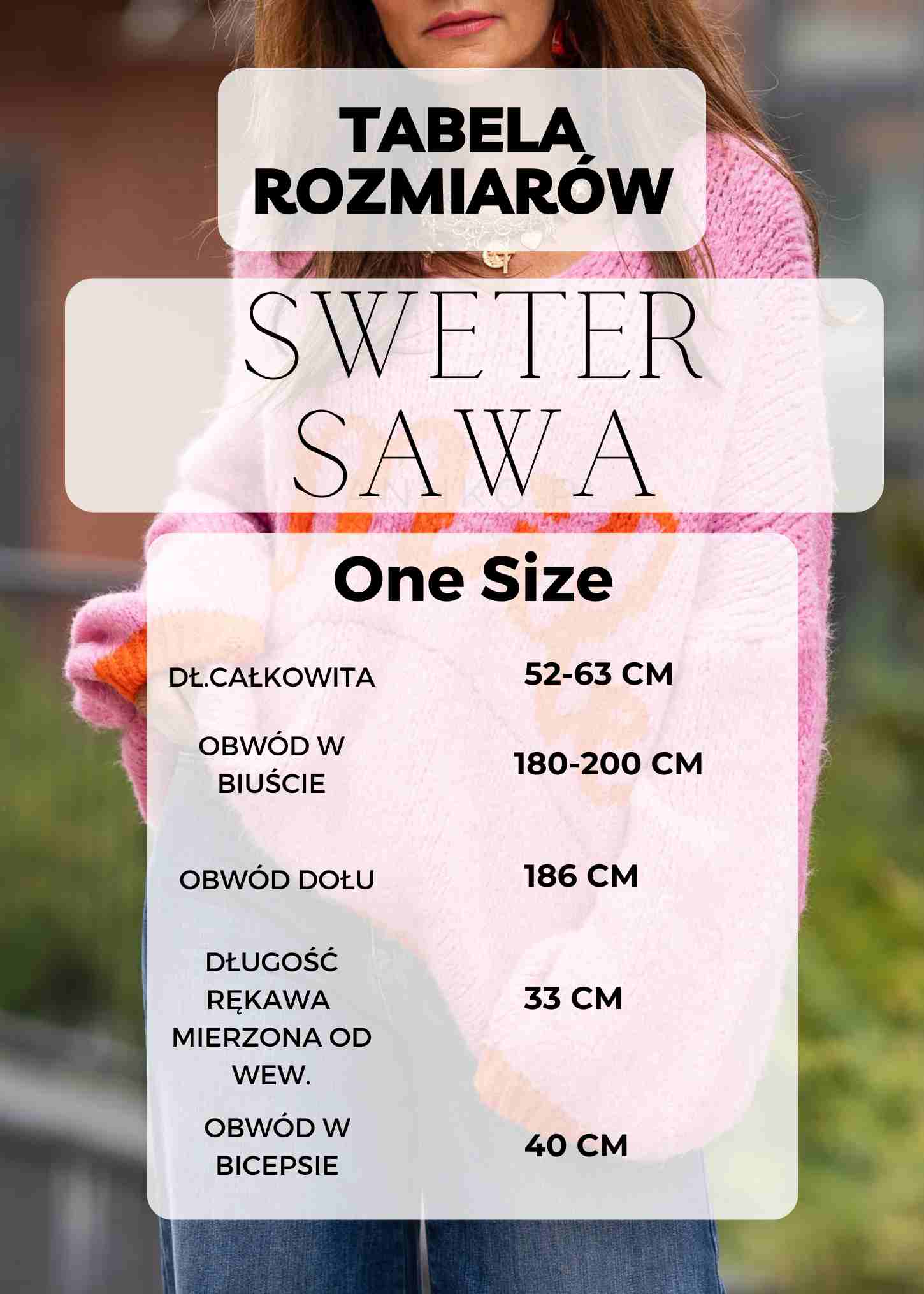 - Obwód rękawa: 33 cm