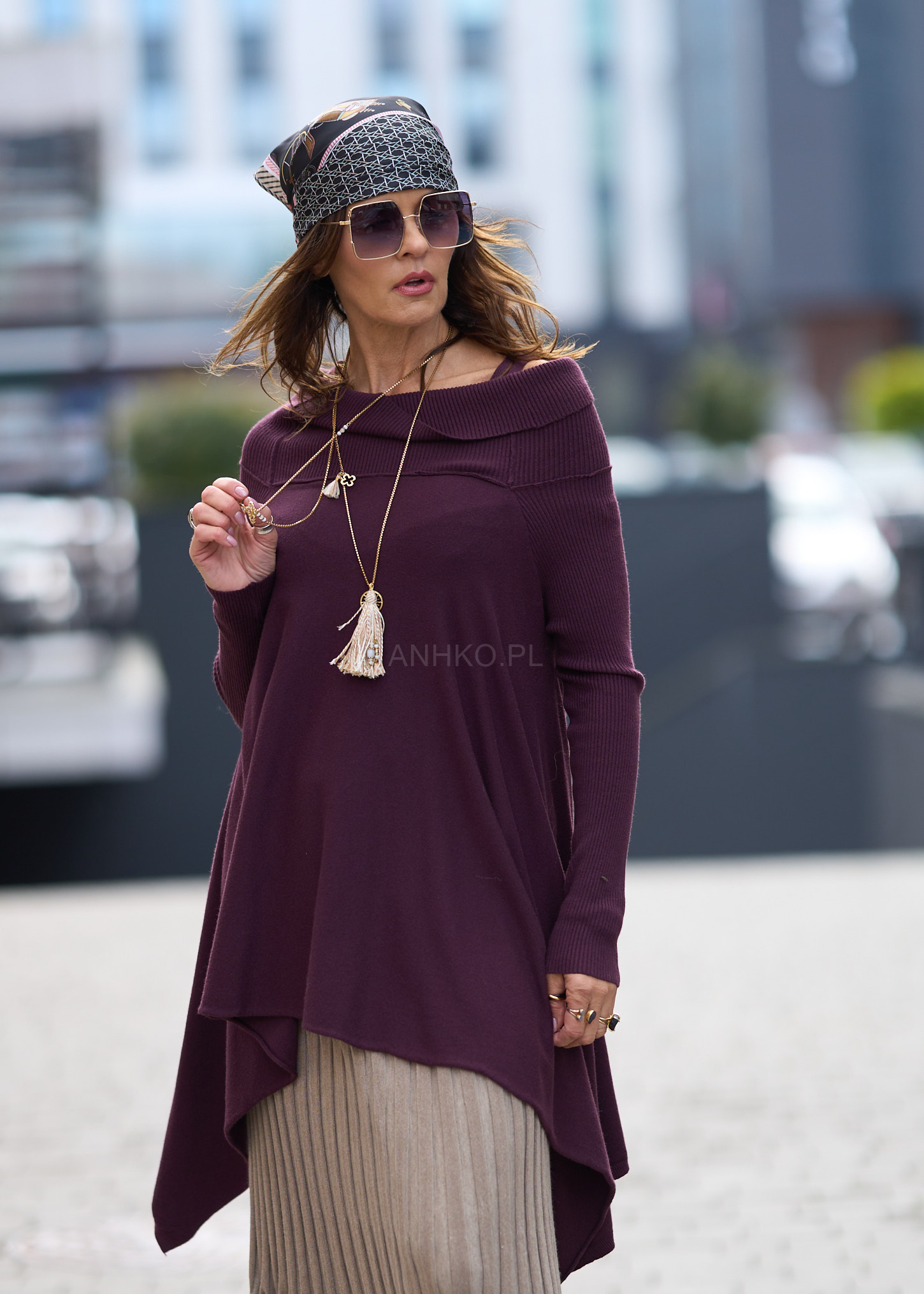 To model, który łączy nowoczesność z kobiecą elegancją. Wykonana z elastycznej dzianiny o przyjemnej strukturze, doskonale dopasowuje się do ciała, podkreślając sylwetkę. Szeroki, prążkowany dekolt pięknie eksponuje ramiona, a lekko rozszerzany dół dodaje lekkości i swobody ruchów. Długie rękawy subtelnie wydłużają linię rąk, nadając całości wysmakowanego charakteru. To tunika, która sprawdzi się zarówno w zestawieniu z jeansami, jak i eleganckimi spodniami lub spódnicą. Idealna na kolację, spotkanie z przyjaciółmi czy wieczorne wyjście. Wykonana z wysokiej jakości włókien, które gwarantują trwałość i komfort noszenia.