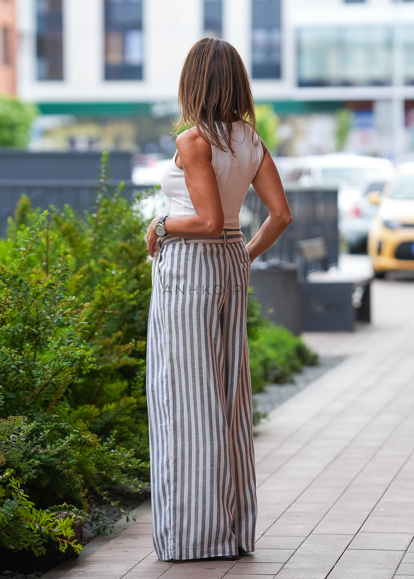 Top uszyty z miękkiej, prążkowanej dzianiny doskonale podkreśla sylwetkę, a subtelne guziczki przy dekolcie dodają mu charakteru. Cienkie ramiączka pozostawiają ramiona odkryte, dzięki czemu top świetnie sprawdzi się zarówno solo, jak i jako baza pod marynarkę czy sweter. Noś go z jeansami na zakupy w centrum, ze spódnicą midi do kawiarni z przyjaciółmi lub pod oversize’ową koszulę w biurze. Dodatek elastanu gwarantuje swobodę ruchu i trwałe dopasowanie.