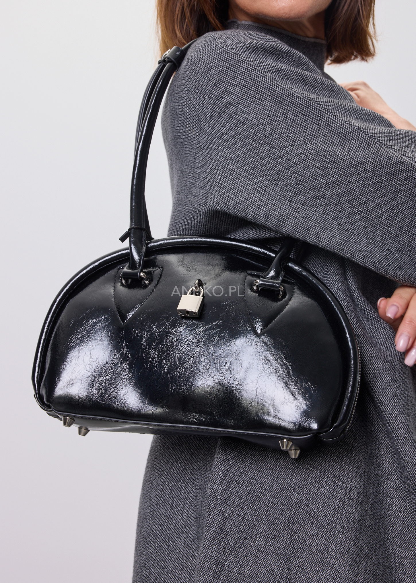 Torebka Locked to połączenie nowoczesnej elegancji i funkcjonalności. Wykonana z gładkiego, lekko połyskującego materiału w głębokiej czerni, przyciąga uwagę minimalistyczną formą i dopracowanymi detalami. Fioletowa podszewka dodaje wnętrzu charakteru i stylowego kontrastu. Model wyposażony jest w krótkie rączki do noszenia w dłoni oraz regulowany, odpinany pasek, który pozwala nosić ją na ramieniu lub crossbody. Usztywnione dno z metalowymi stopkami zwiększa trwałość i komfort użytkowania. Torebka doskonale pasuje do stylizacji biurowych, casualowych oraz eleganckich zestawów na kolację, spotkanie czy wyjście do miasta.