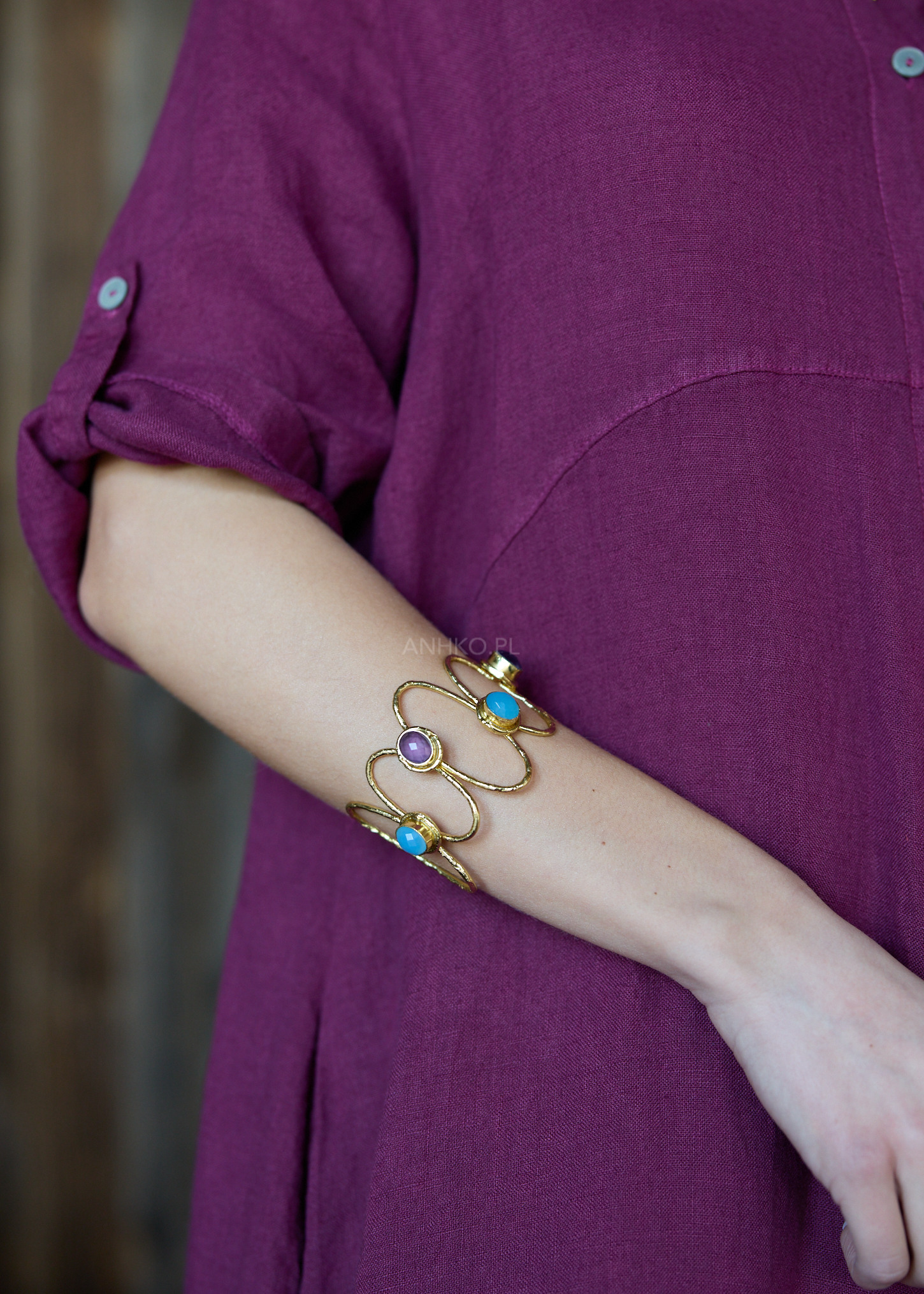 Bransoletka ElegantSummer to połączenie subtelnej elegancji i naturalnego uroku boho. Zastosowane jasnoniebieskie i fioletowe kamienie to ametysty, które wnoszą harmonię i spokój do każdej stylizacji. Jej delikatna konstrukcja pozwala na łatwe włożenie przez rękę, a bransoletka stopniowo rozszerza się, dopasowując do nadgarstka.