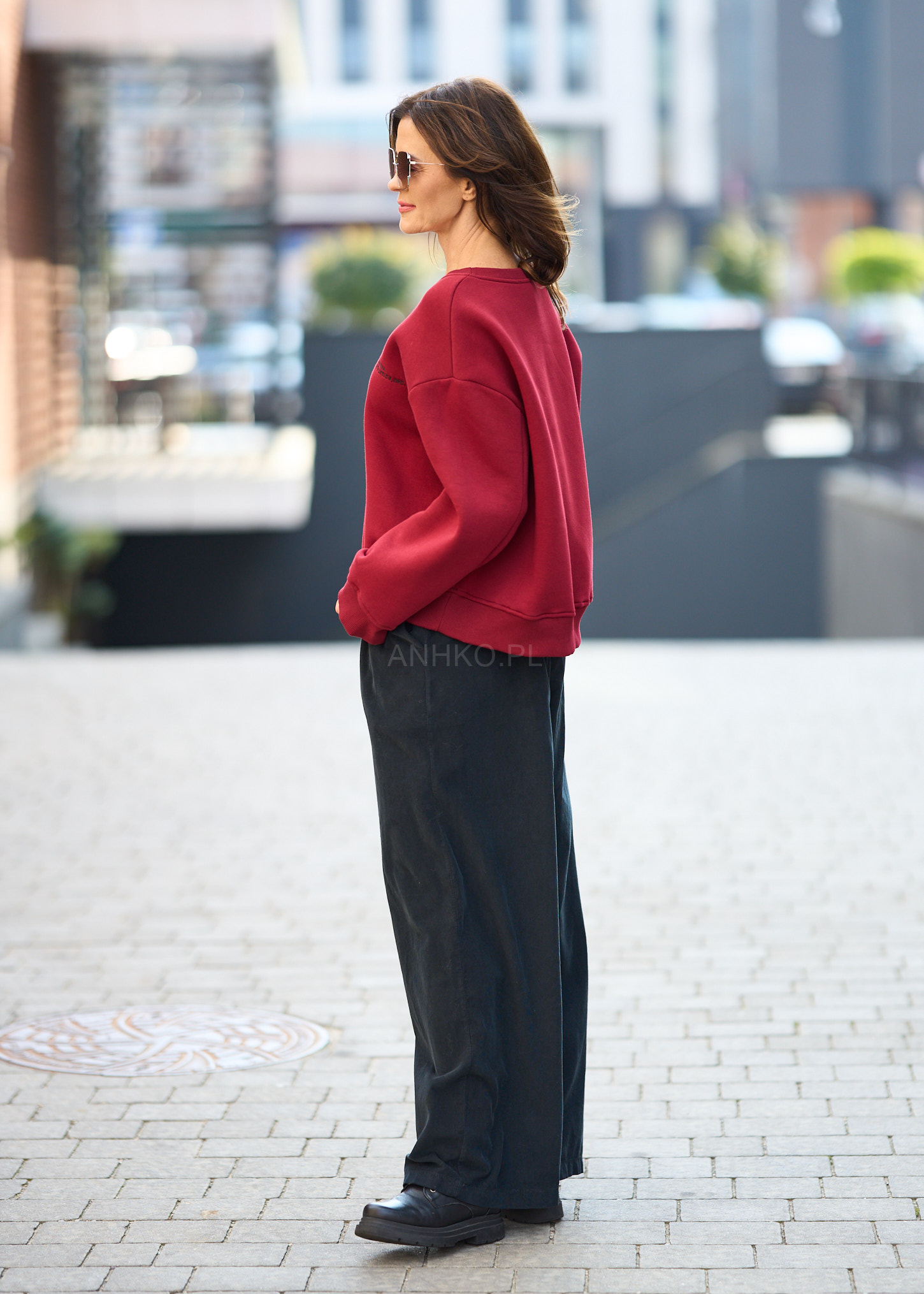 Spodnie sztruksowe Bresco Czarne - Spodnie z szeroką nogawką i gumką w pasie.