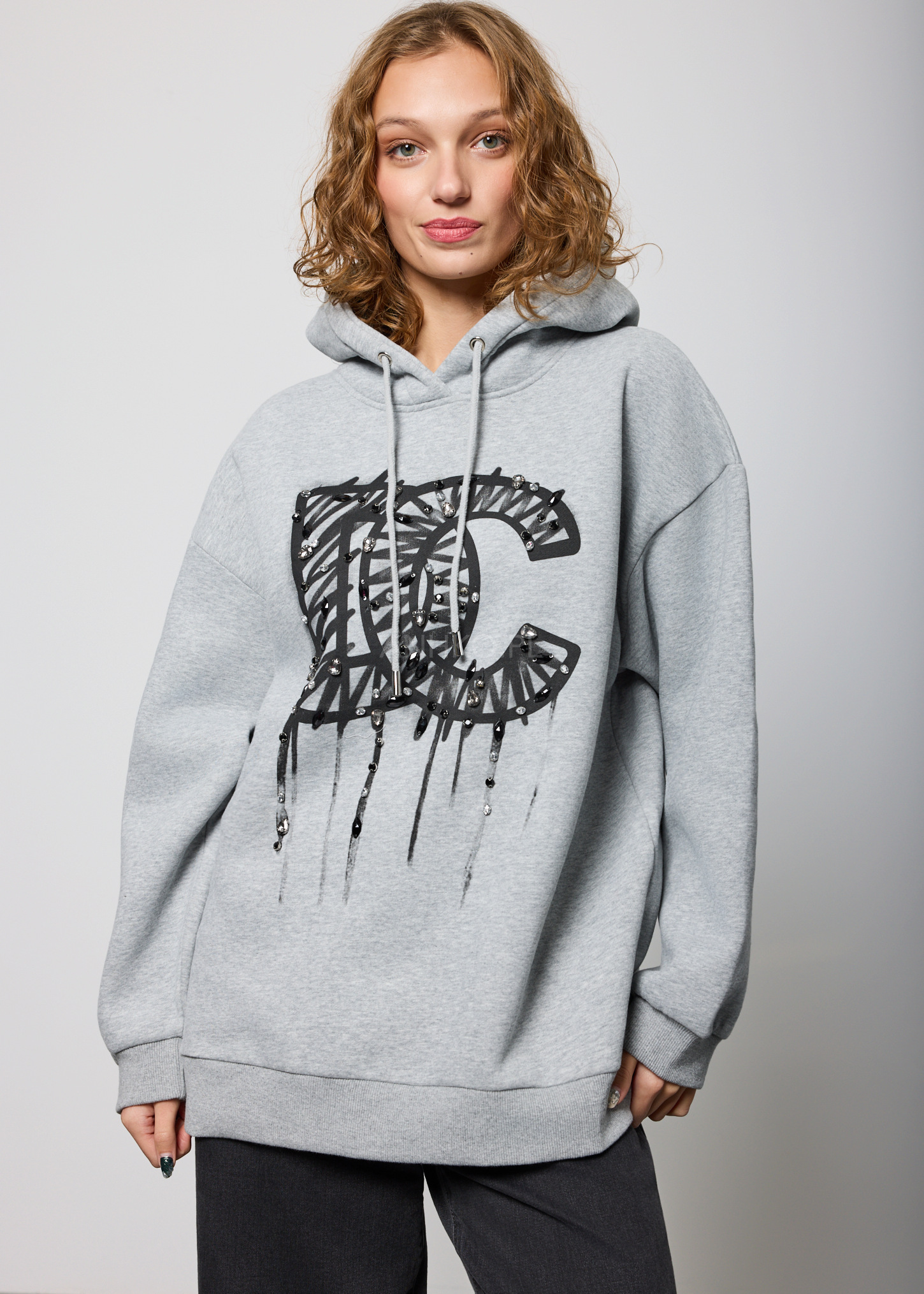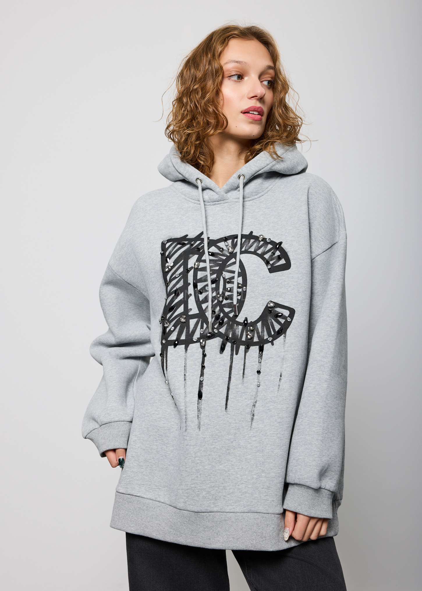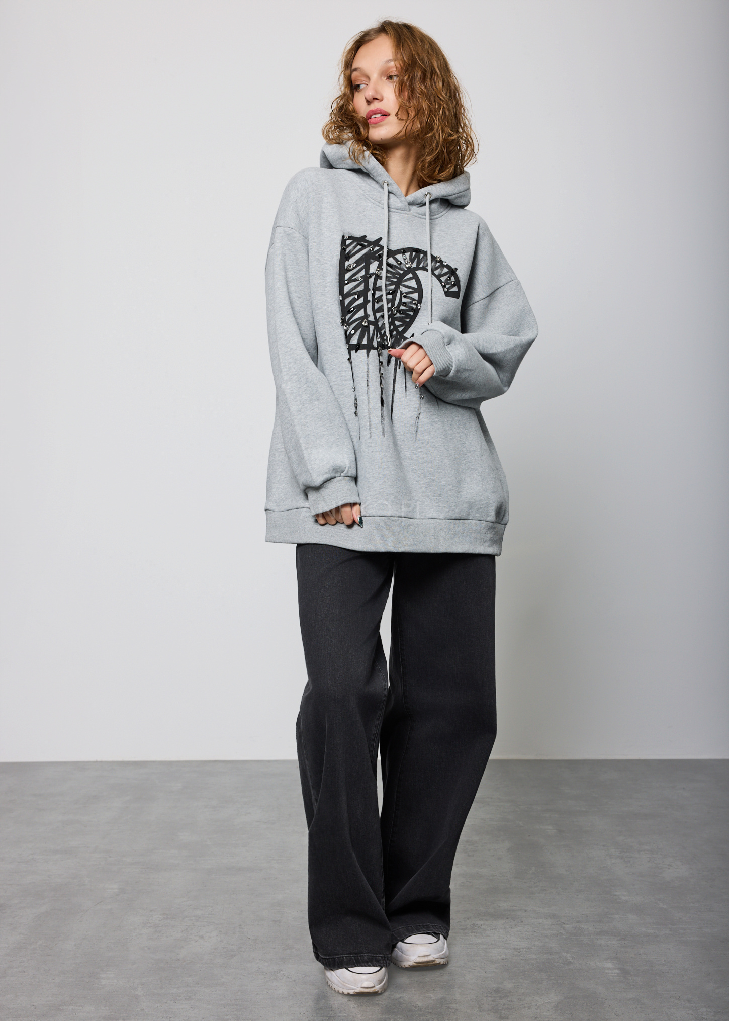 Bluza oversize z kapturem to swobodny i stylowy element garderoby. Jej luźny fason zapewnia wygodę noszenia, a duży kaptur dodaje jej nowoczesności. Na froncie bluzy widoczne są duże litery "DC" oraz charakterystyczne cyrkonie, co nadaje jej dynamicznego i miejskiego charakteru. Ta bluza to idealny wybór dla osób ceniących streetwearowy styl i chcących wyrazić swój entuzjazm wobec kultury miejskiej. To nie tylko wygodna opcja na co dzień, ale także sposób na wyrazistą i pełną charakteru stylizację.