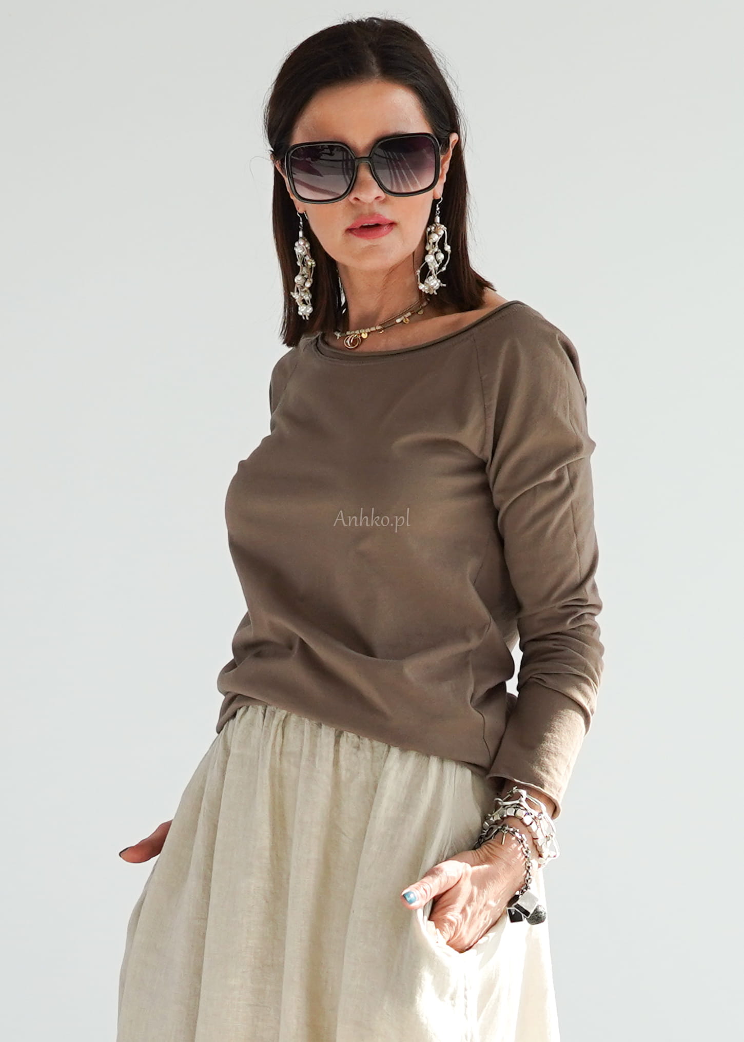 Esencja prostoty i minimalizmu. Wykonany z miękkiej, przyjemnej w dotyku dzianiny, zapewnia wygodę i swobodę ruchów przez cały dzień. Stonowany odcień taupe doskonale komponuje się z naturalnymi tkaninami, takimi jak len czy bawełna, dlatego świetnie pasuje zarówno do spódnic midi, jak i szerokich spodni czy jeansów. To idealny wybór na co dzień, do pracy, na spotkania czy weekendowe wyjazdy — wszędzie tam, gdzie liczy się komfort połączony ze stylem. Jego uniwersalny charakter sprawia, że łatwo dopasujesz go do biżuterii i dodatków, tworząc estetyczne, spójne zestawy.