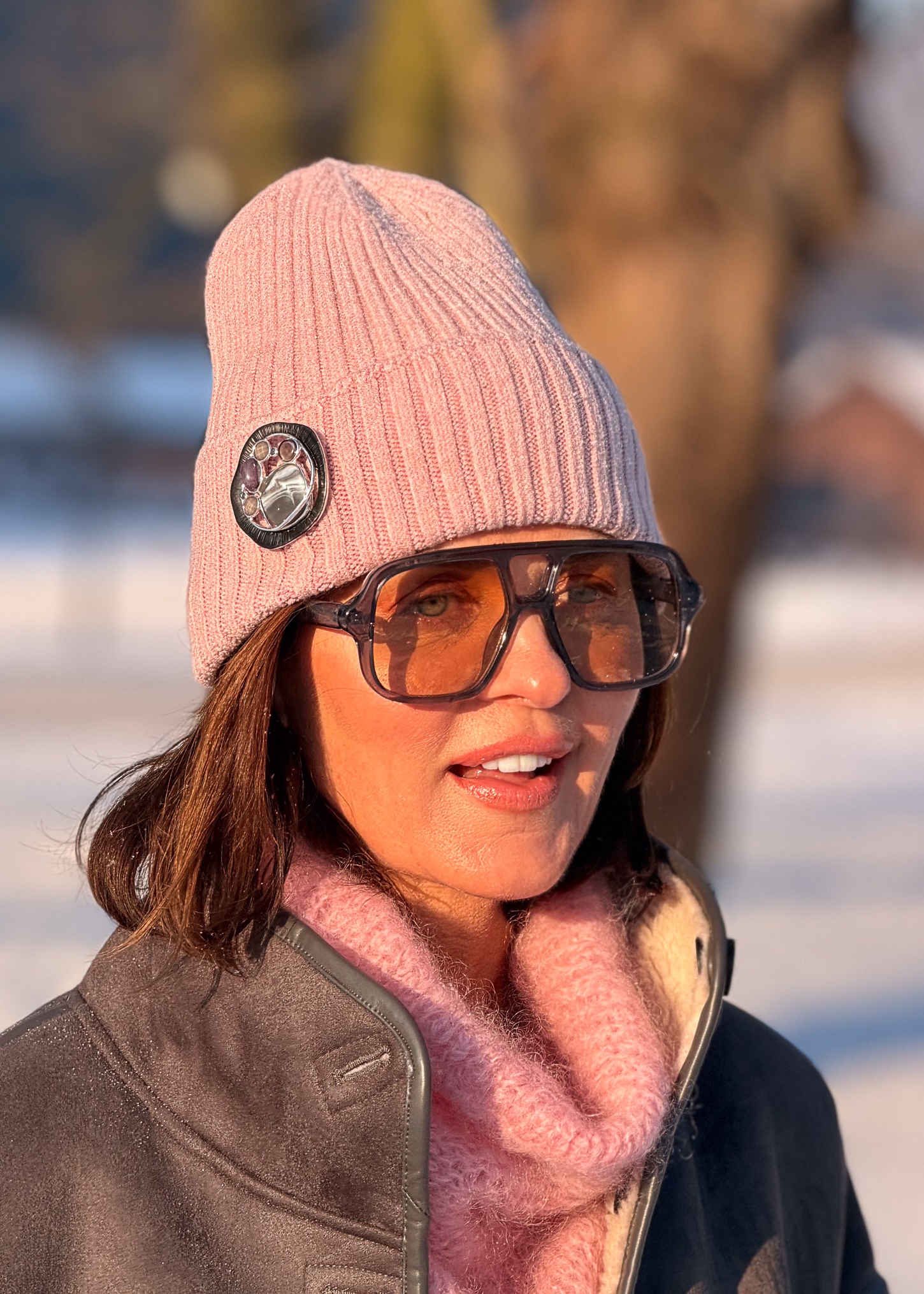 Czapka Sonella Pudroworóżowa - Klasyczna, prążkowana czapka beanie w pudrowym odcieniu różu. Miękka, elastyczna dzianina zapewnia komfort noszenia i ponadczasowy wygląd na chłodniejsze dni.