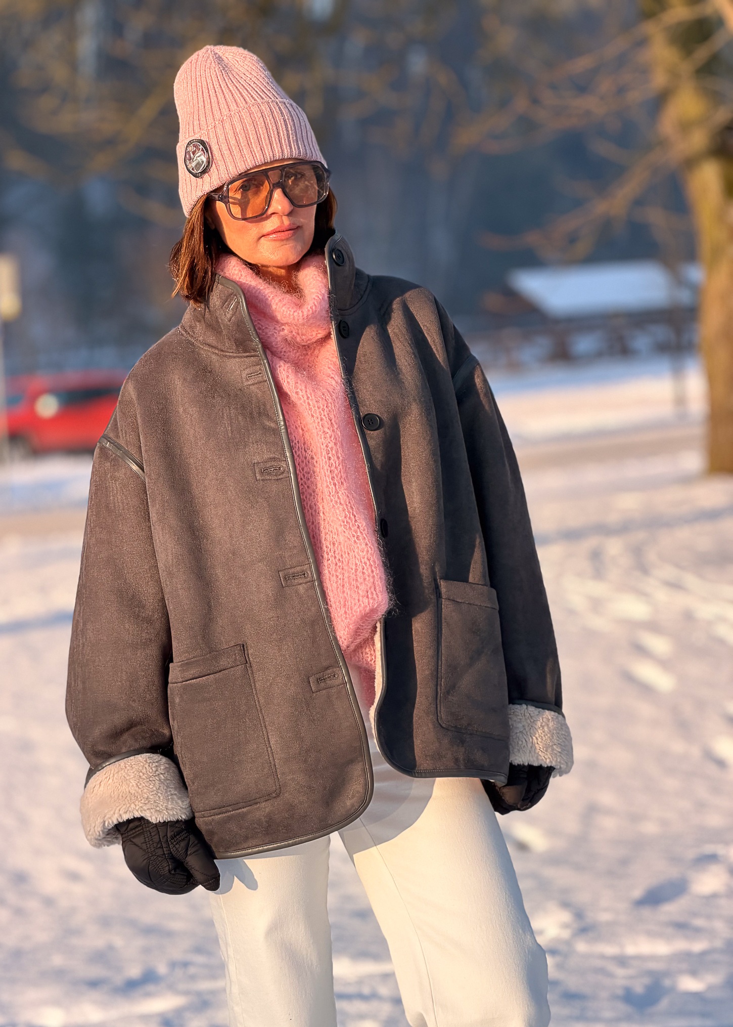 Kożuch Dwustronny Noah Off-Duty Grafitowo-Beżowy - Kurtka o wyrazistej, ponadczasowej formie, która łączy casualowy luz z miejską elegancją. Zapewnia komfort cieplny, swobodę ruchów i mocny akcent stylizacyjny na chłodniejsze dni. Idealna na co dzień i na weekendowe wyjścia.