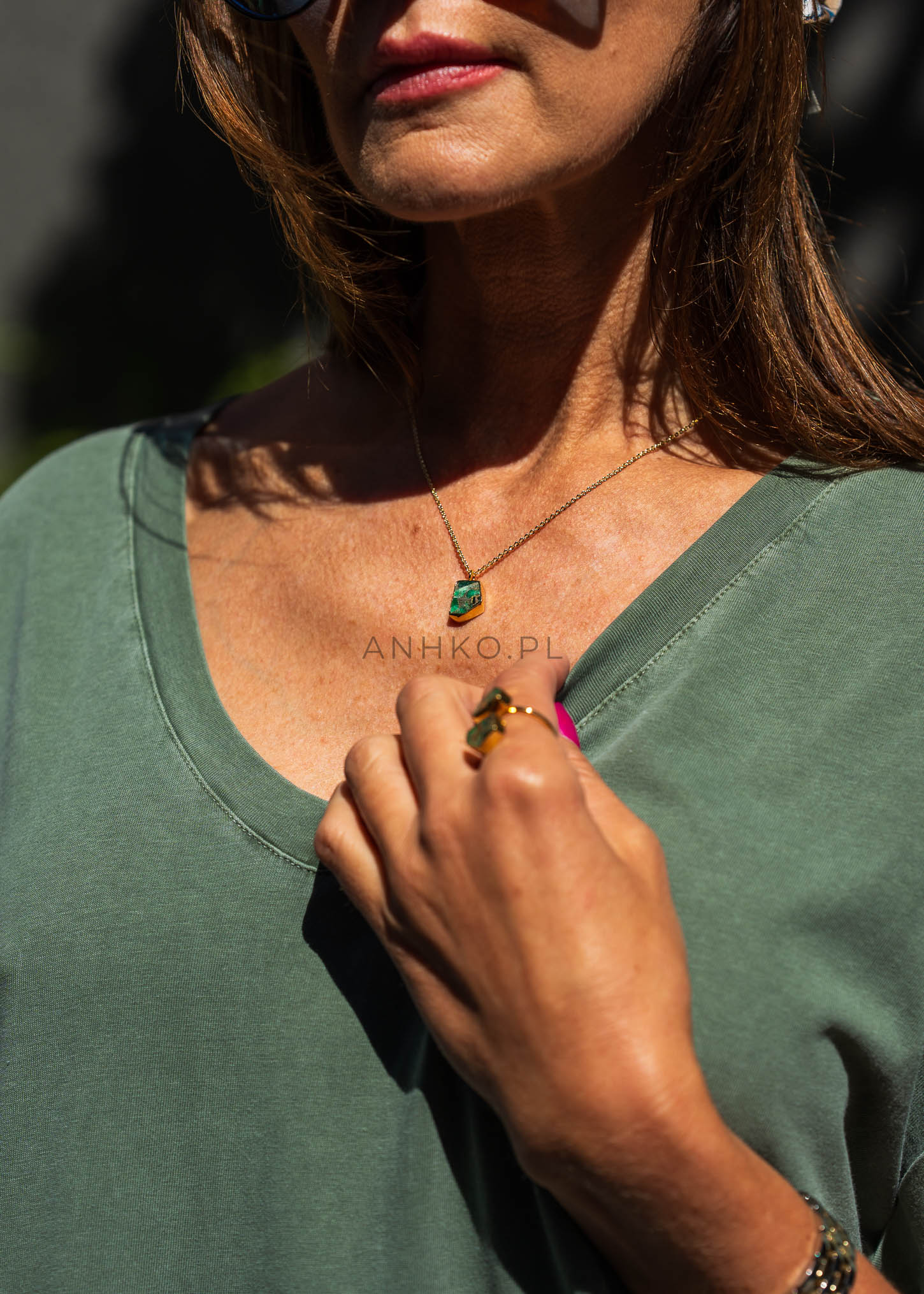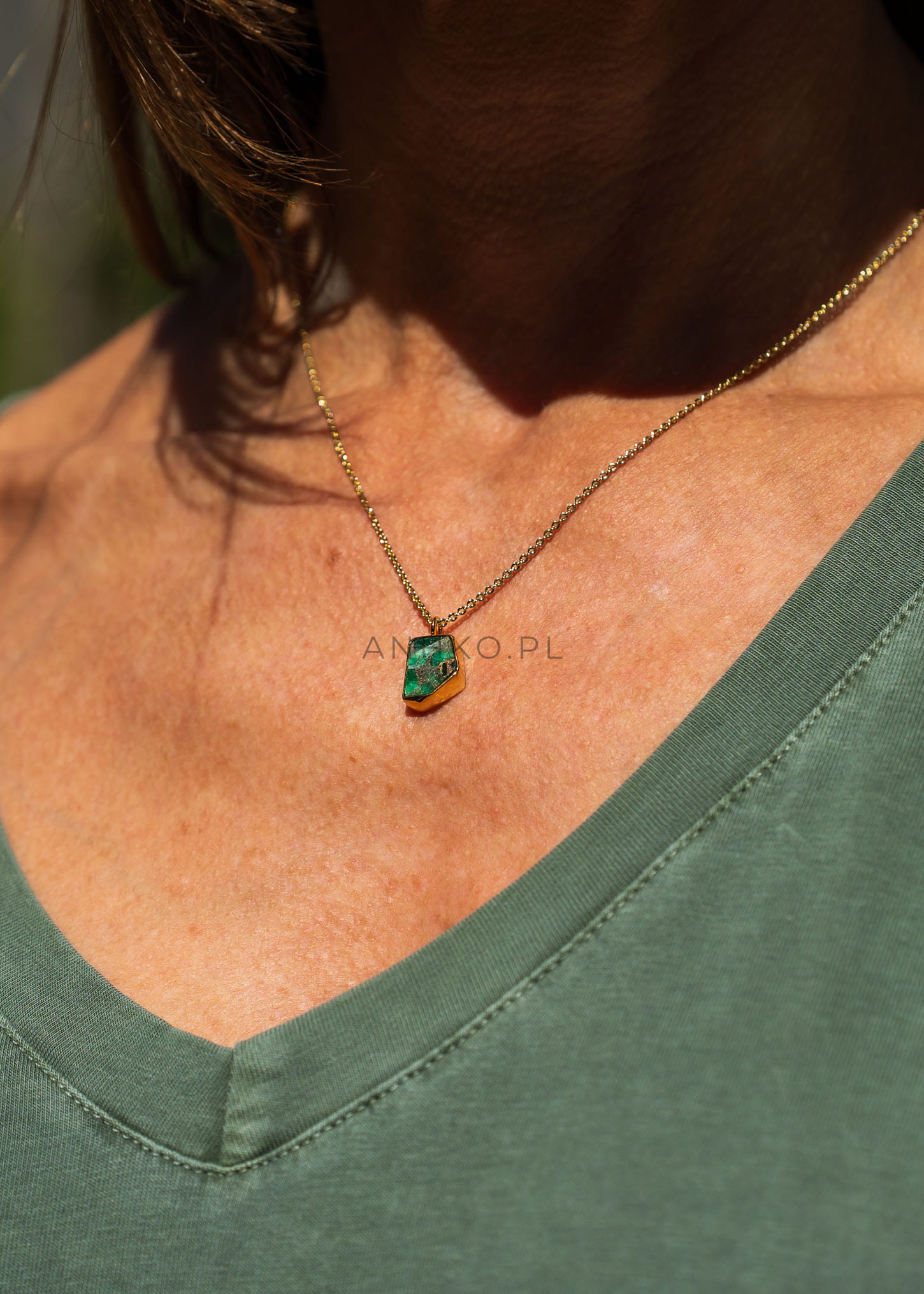 Naszyjnik z zielonym agatem Duality w Kolorze Złotym