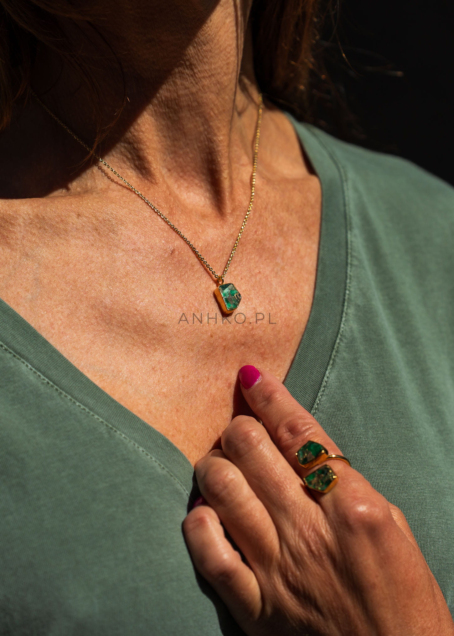 Duality to pierścionek, który przyciąga wzrok dzięki pięknemu zielonemu agatowi w centralnej części. Złote wykończenie nadaje mu elegancji, a metalowa konstrukcja jest testowana na nikiel, co zapewnia bezpieczeństwo noszenia. Pierścionek jest rozszerzalny, co sprawia, że pasuje na każdy palec, zapewniając wygodę i komfort.
