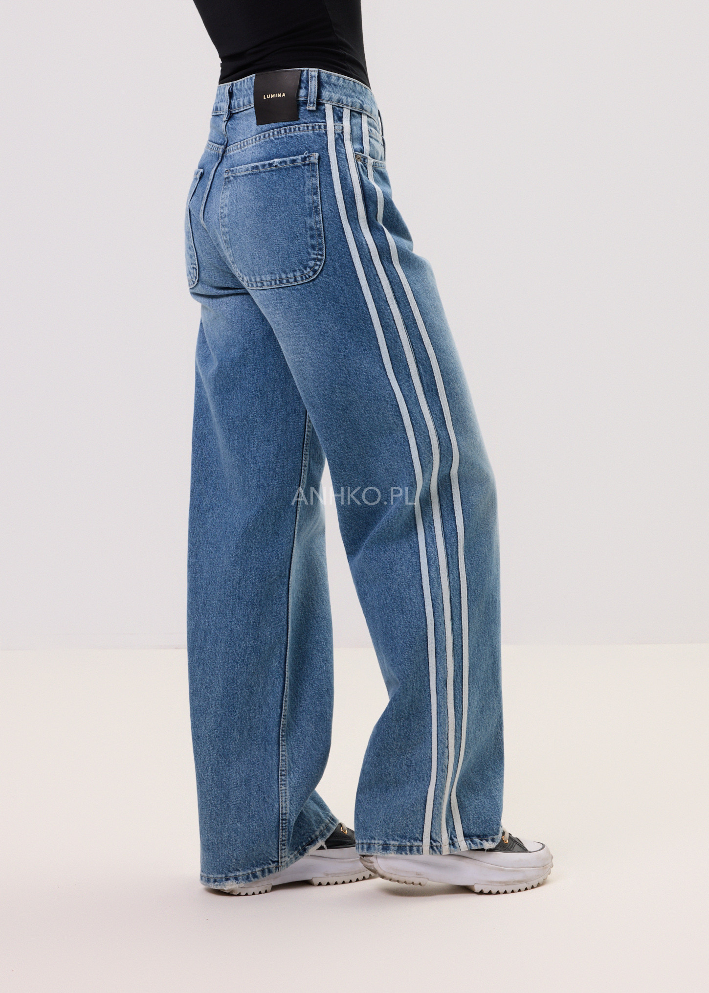 Stylowe jeansy w przetartym odcieniu, które wyróżniają się unikatowym designem i wysoką jakością wykonania. Dzięki eleganckim lampasom wzdłuż nogawek, te spodnie są doskonałym wyborem na co dzień, ale sprawdzą się również w bardziej wyrafinowanych stylizacjach. Modna kolorystyka oraz perfekcyjnie dopasowany krój sprawiają, że jeansy te stanowią idealną bazę do wielu zestawów.
