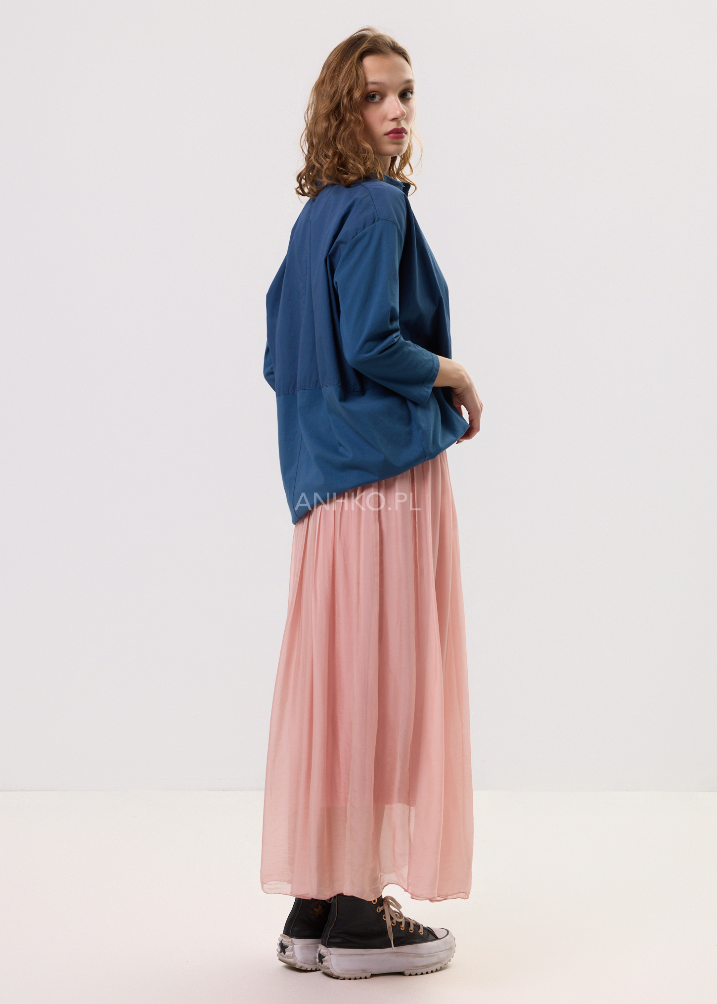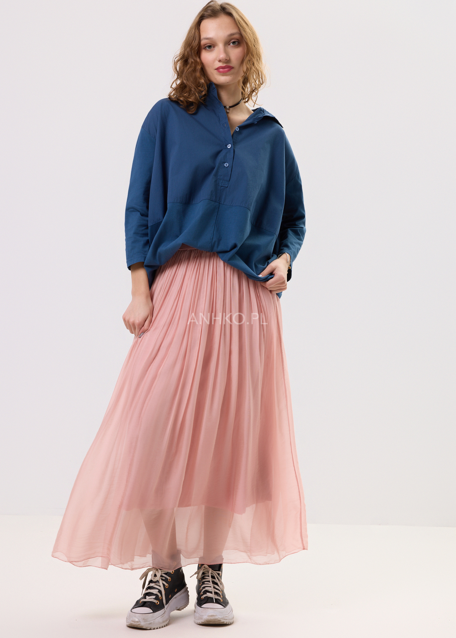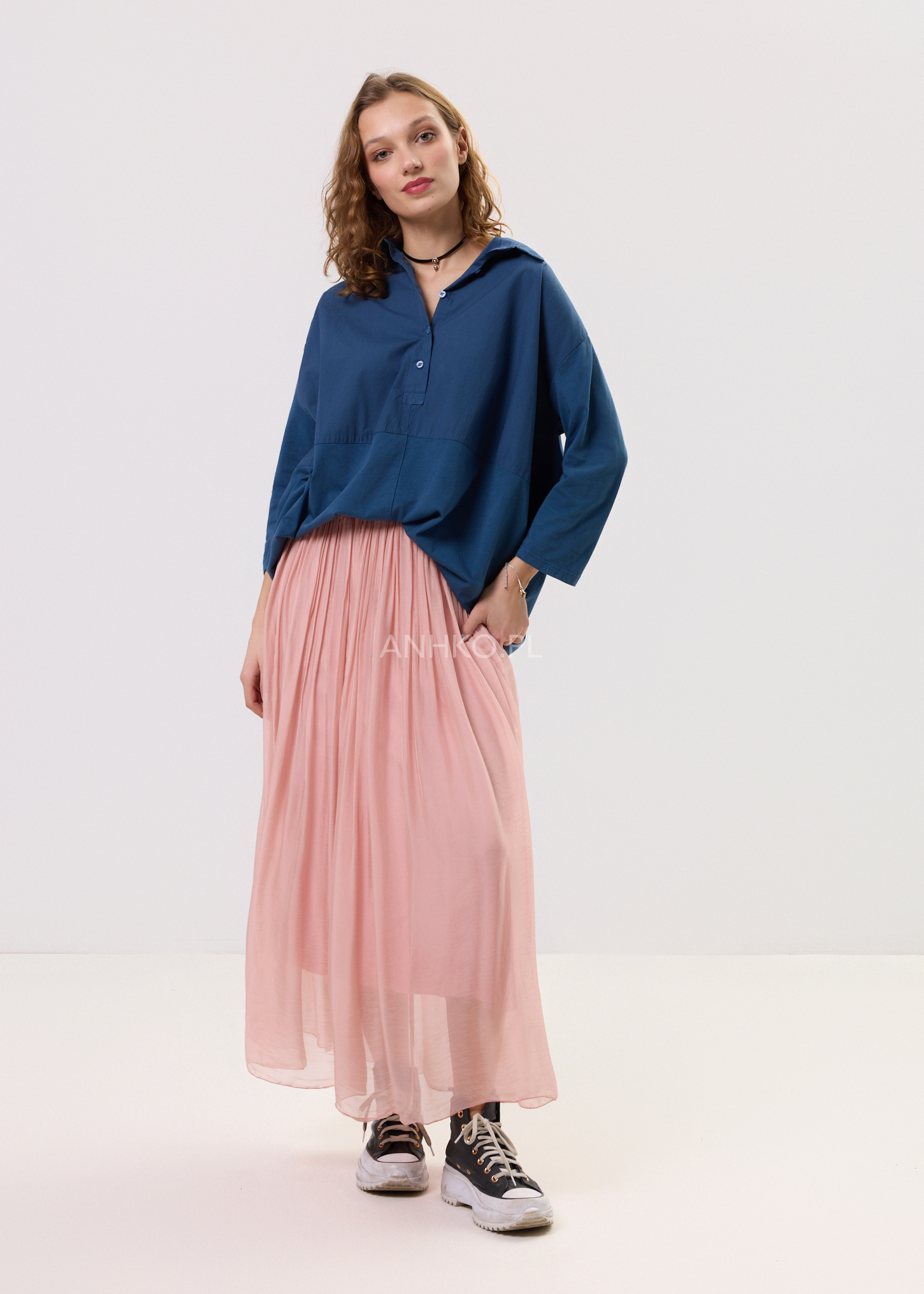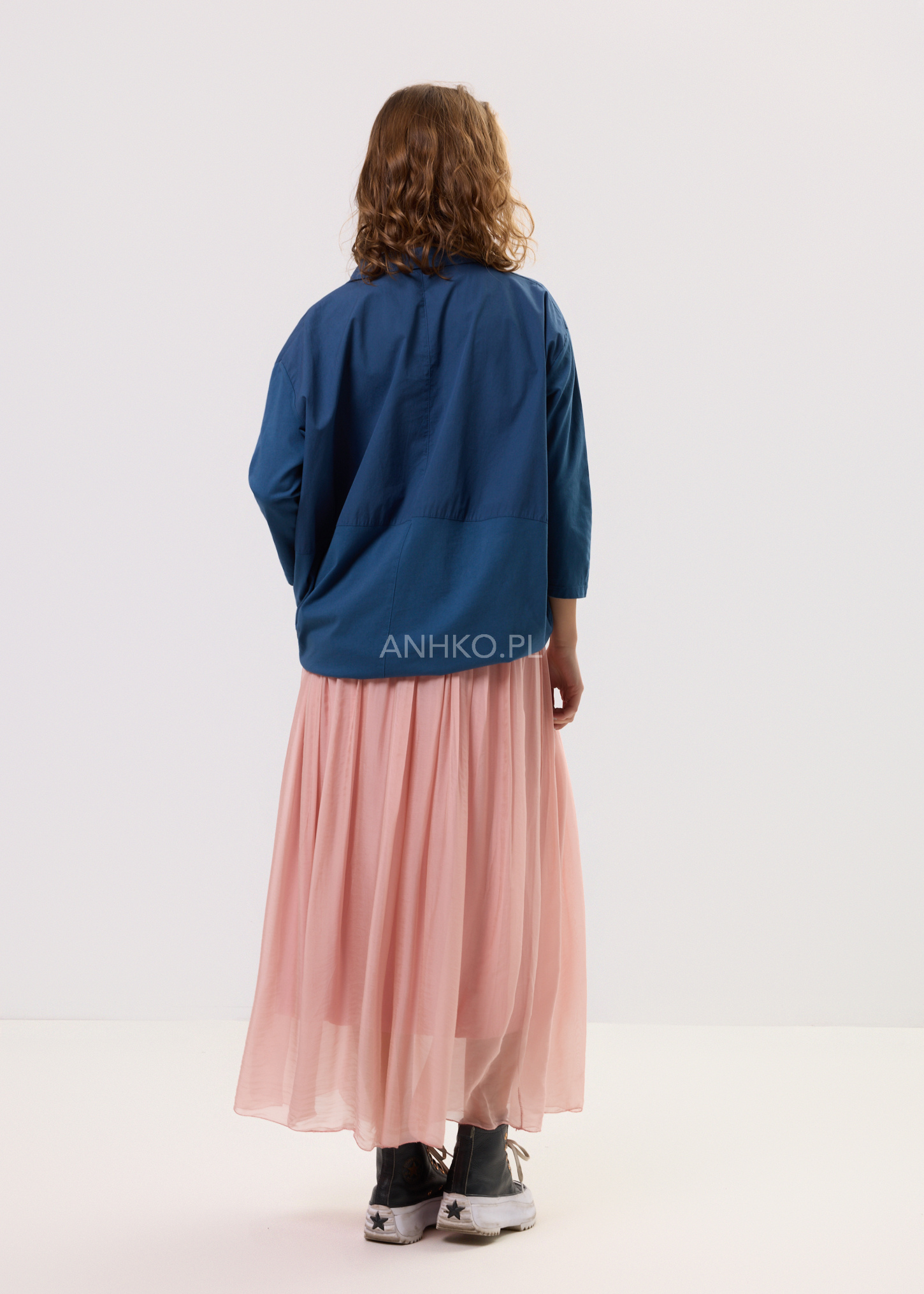 Koszula stworzona z myślą o kobietach ceniących komfort, naturalność i niewymuszoną elegancję. Luźny fason zapewnia swobodę ruchów i pięknie układa się na sylwetce, a miękka, lekka tkanina sprawia, że koszula doskonale sprawdza się przez cały dzień. Klasyczny kołnierzyk nadaje jej uniwersalnego charakteru, dzięki czemu łatwo zestawić ją zarówno ze spódnicami, jak i spodniami. Głęboki granatowy kolor podkreśla styl casual i boho, a jednocześnie pasuje do bardziej stonowanych zestawów. Idealna do pracy, na spotkania, spacery, wyjazdy oraz codzienne stylizacje w miejskim rytmie.