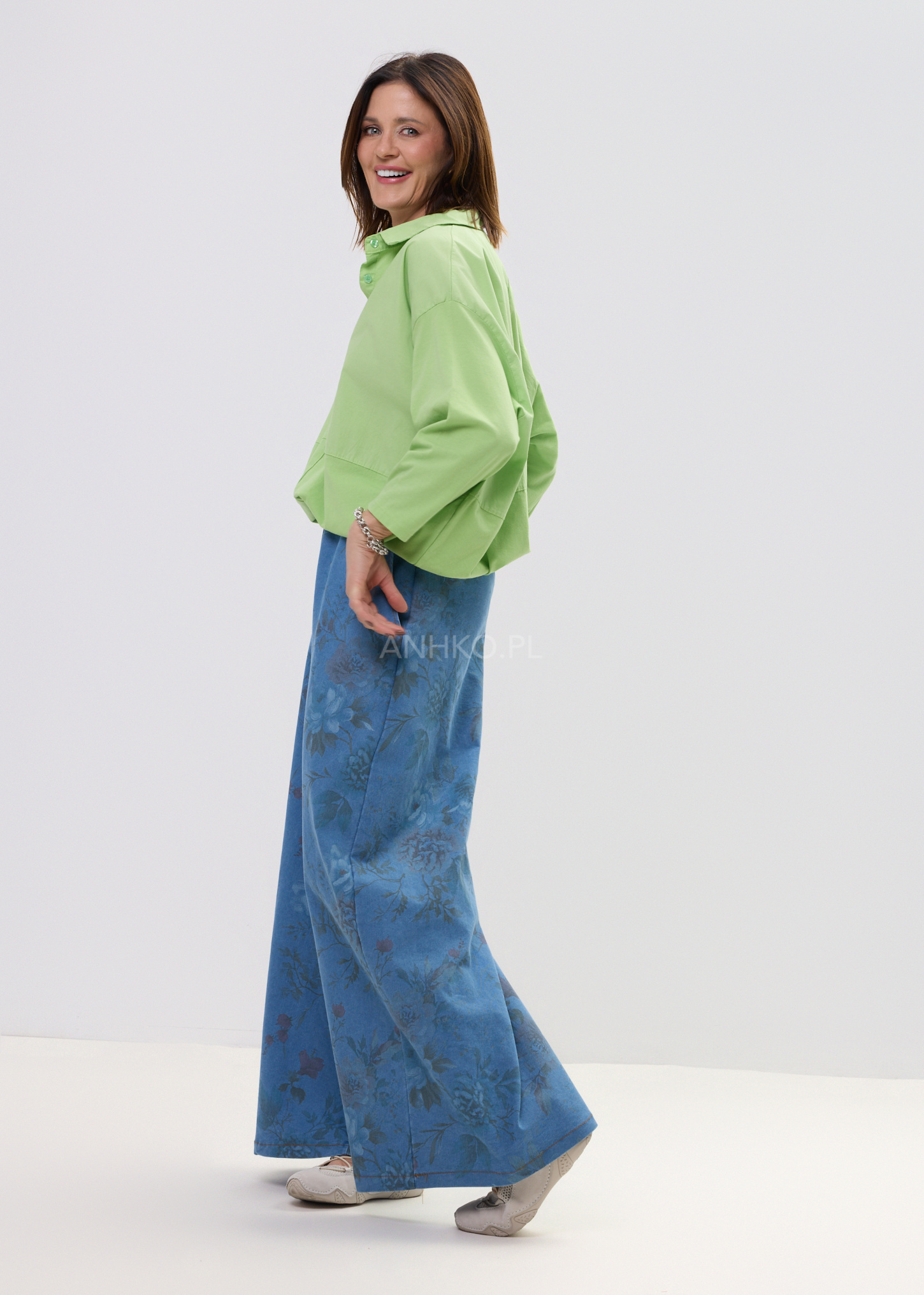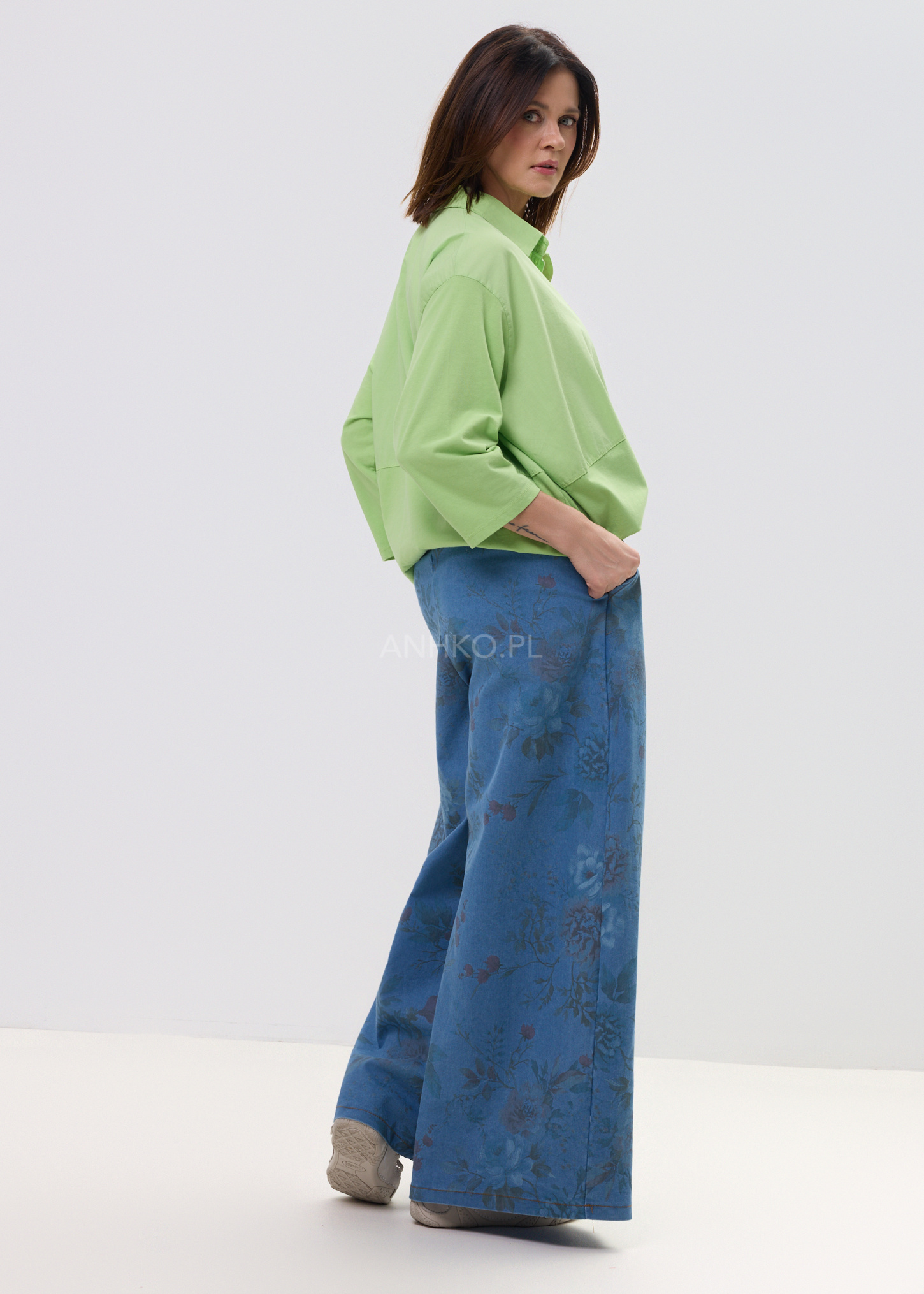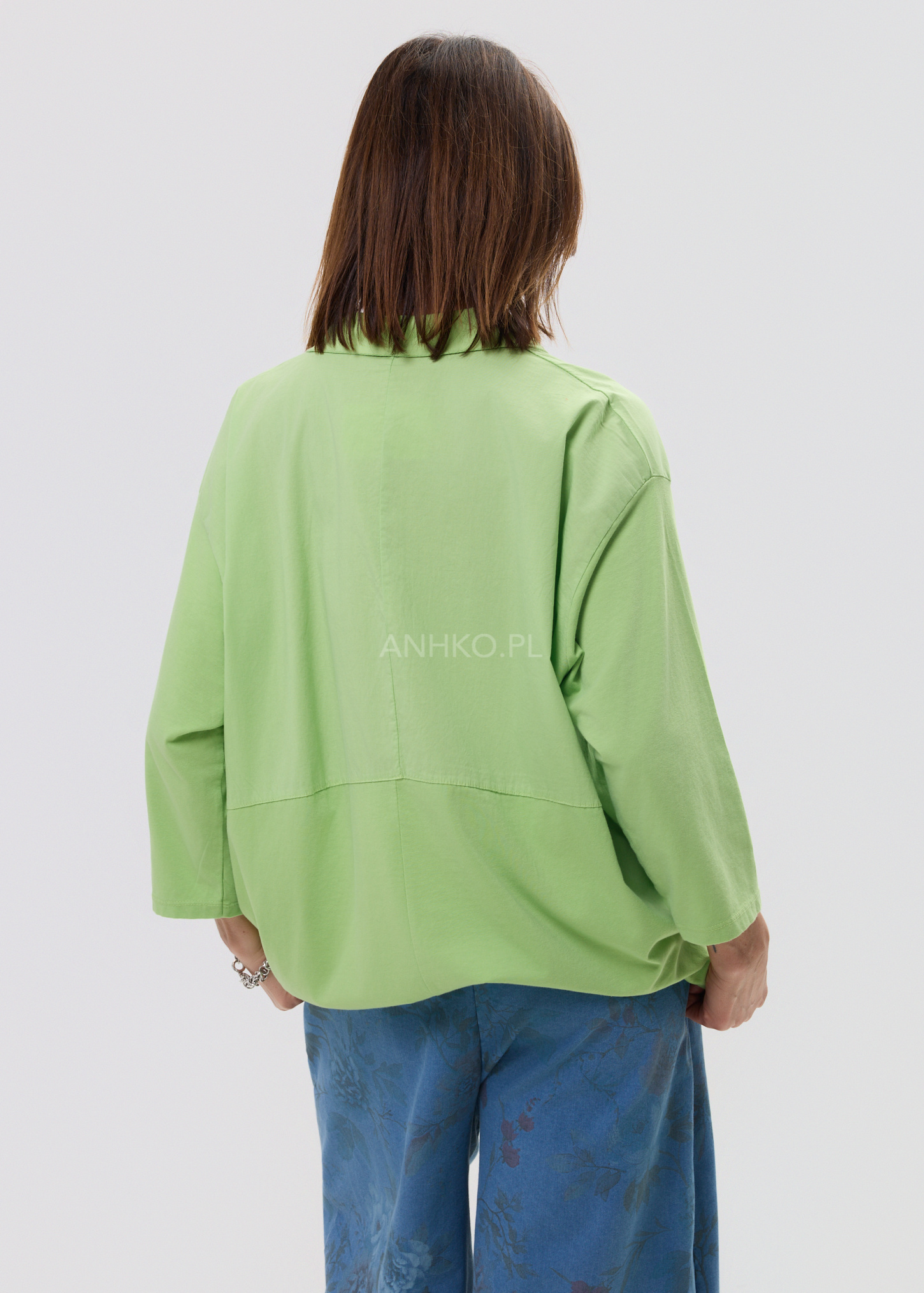Ta koszula damska oversize w intensywnym, limonkowym odcieniu swobodnie opływa sylwetkę, tworząc lekki, niewymuszony efekt. Luźny fason z obniżoną linią ramion i delikatnym przeszyciem poniżej biustu nadaje całości nowoczesnego charakteru, a miękka bawełniana tkanina pięknie układa się w ruchu. Model doskonale współgra zarówno z dopasowanym dołem, jak i bardziej wyrazistą spódnicą czy szerokimi spodniami.