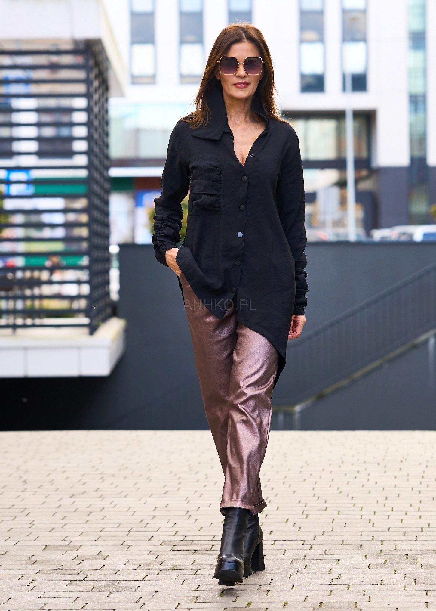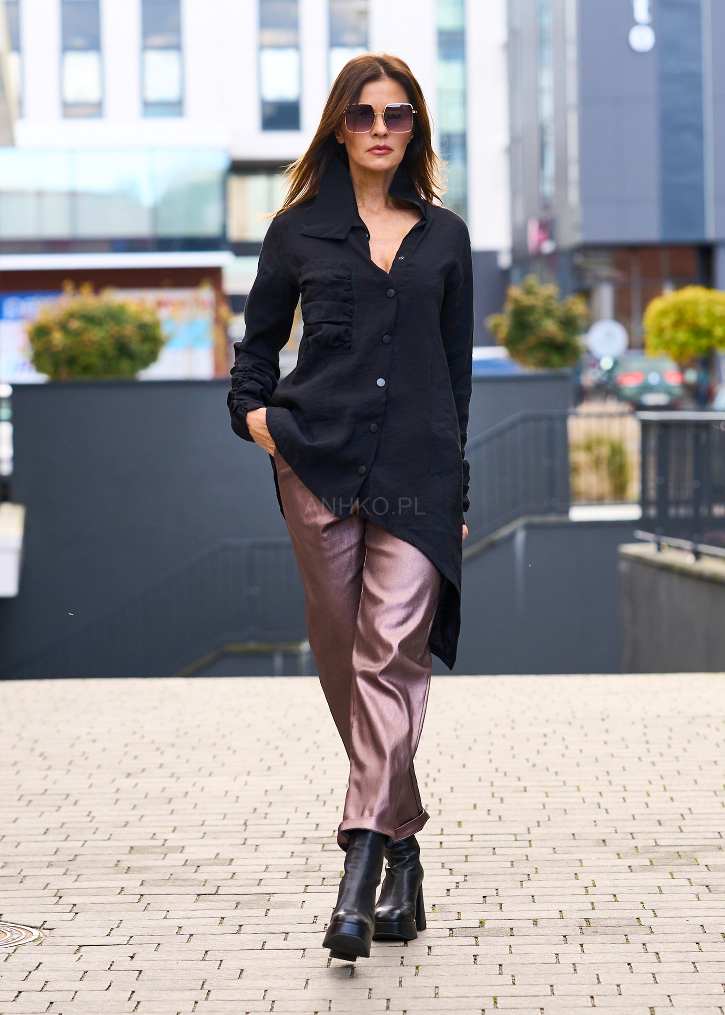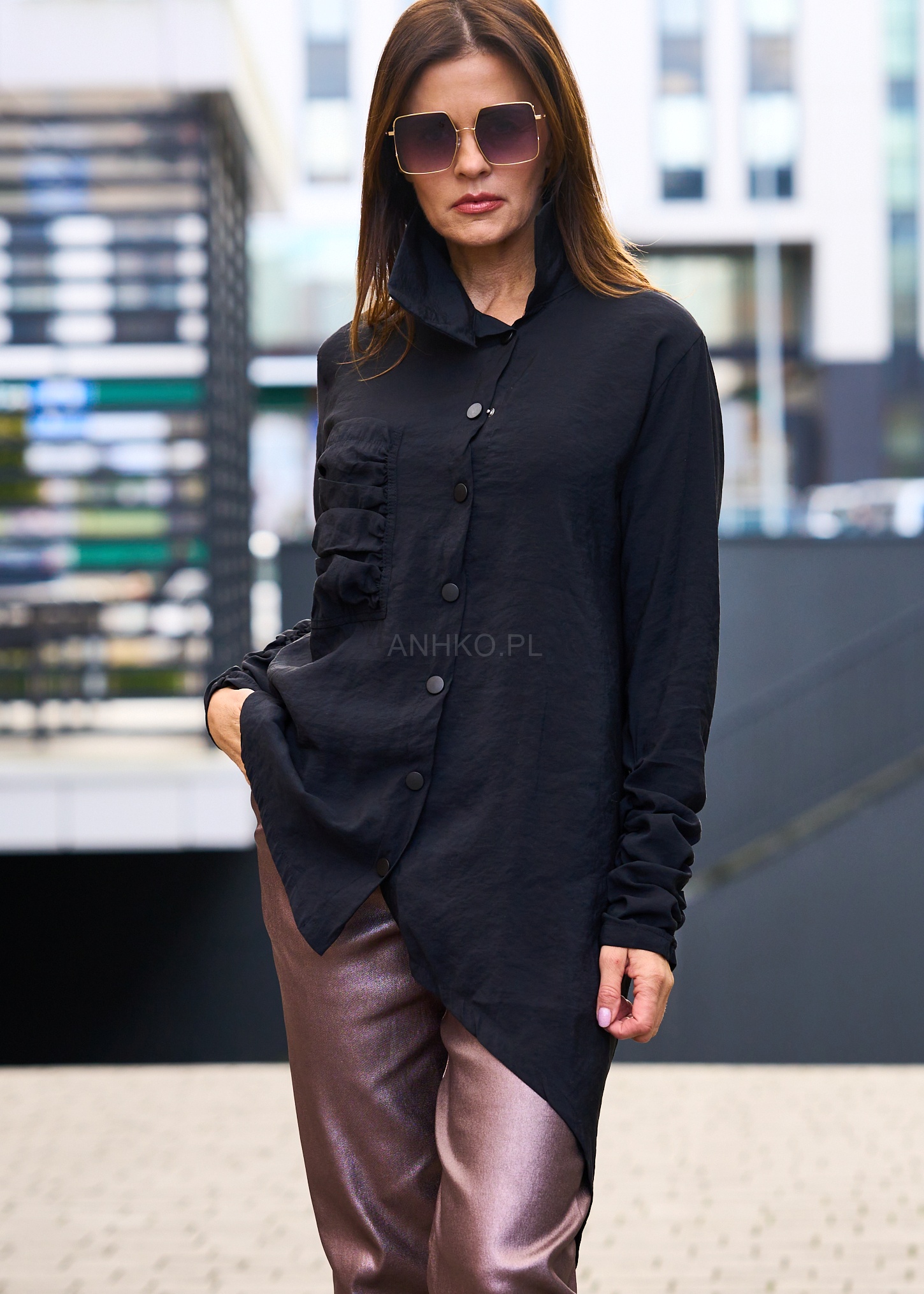 Koszula, która zachwyca niebanalną formą i starannie dopracowanymi detalami. Asymetryczny dół wydłuża sylwetkę, a marszczona kieszeń dodaje projektowi wyjątkowego charakteru. Miękka, lekko strukturalna tkanina pięknie układa się na ciele, zapewniając jednocześnie komfort noszenia. Model świetnie spisze się w stylizacjach wieczorowych, smart casual, a także wtedy, gdy chcesz dodać zwykłym, codziennym zestawom odrobinę artystycznego sznytu. Doskonale łączy się z eleganckimi spodniami, gładkimi jeansami czy połyskującymi elementami garderoby. To koszula, która przyciąga spojrzenia i podkreśla indywidualny styl.