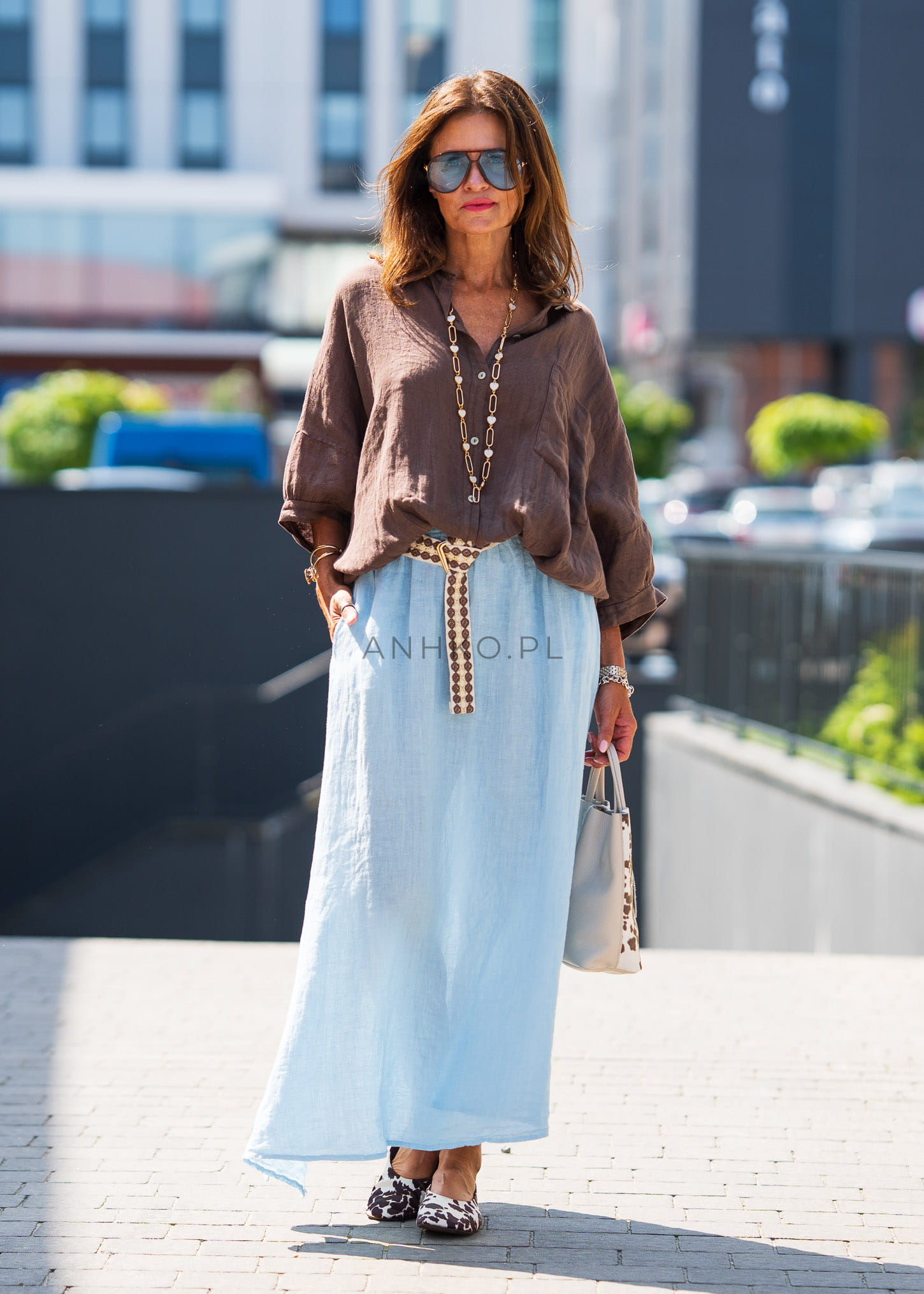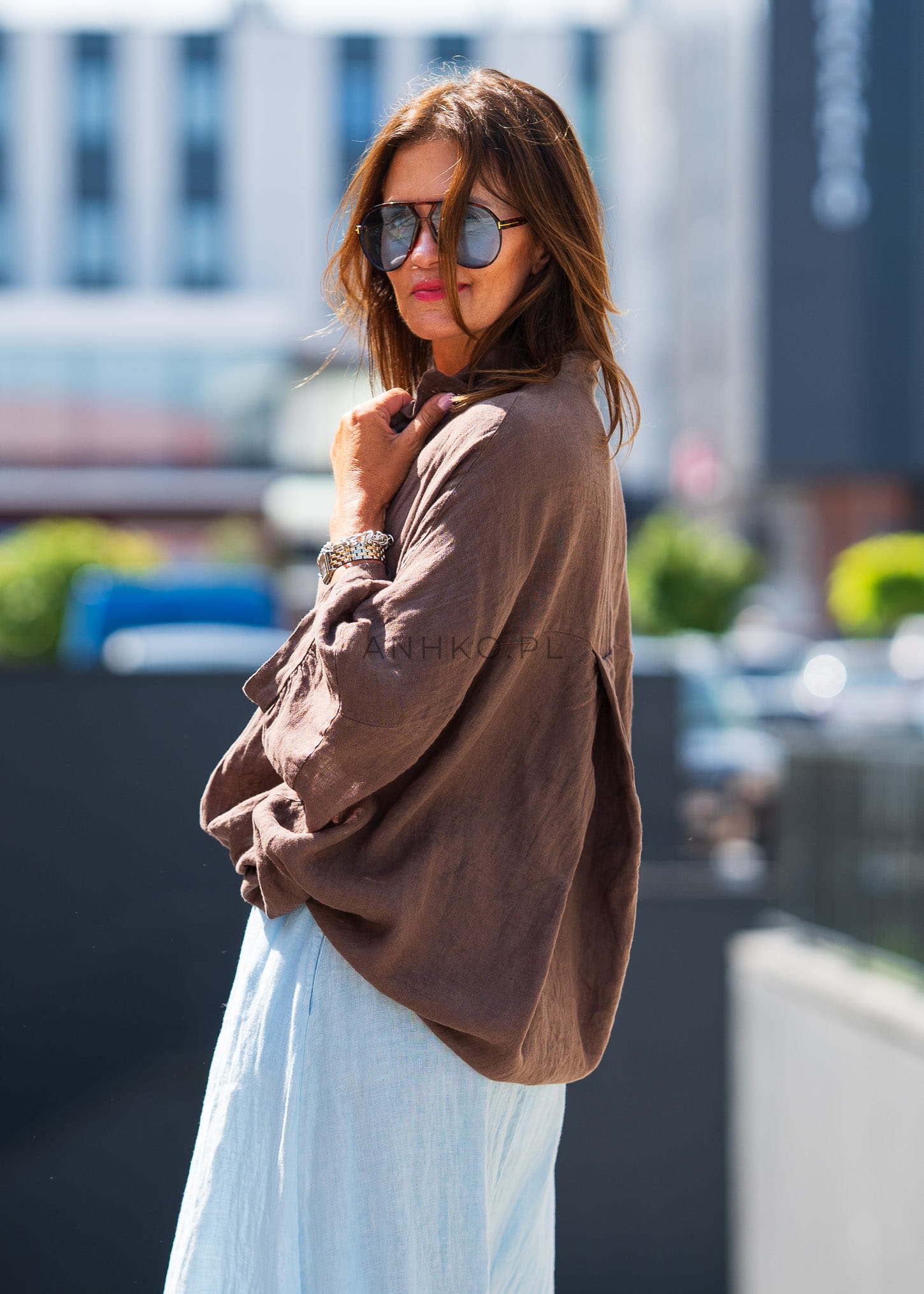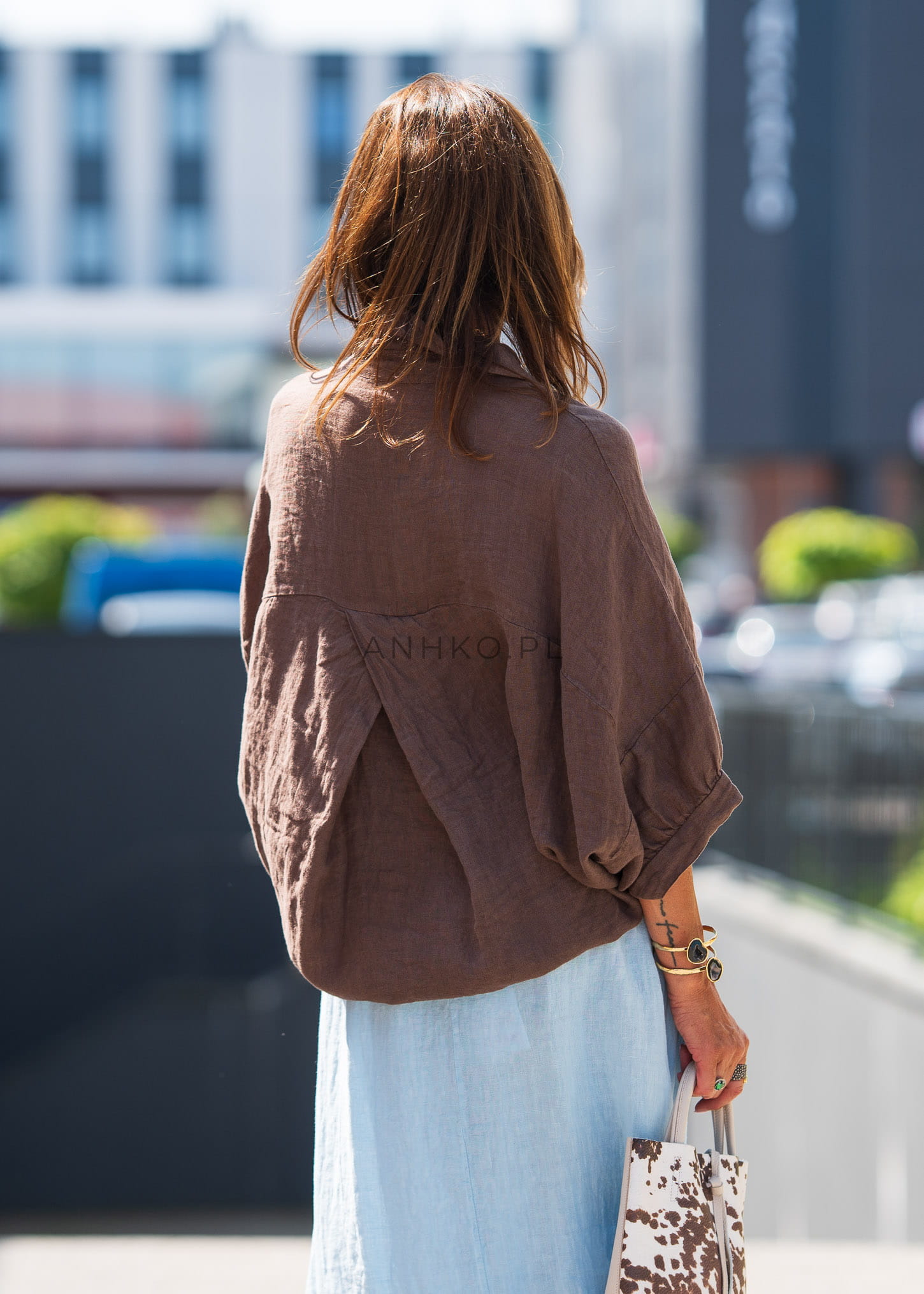Świetnie wygląda z jasnymi spódnicami, lnianymi spodniami lub jeansami – możesz nosić ją luźno lub lekko podwiniętą dla bardziej dynamicznego efektu.