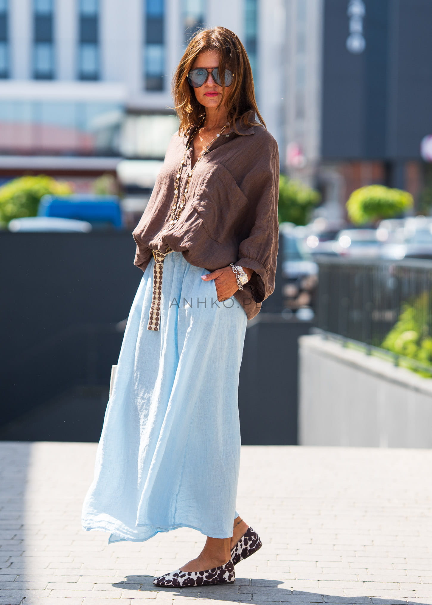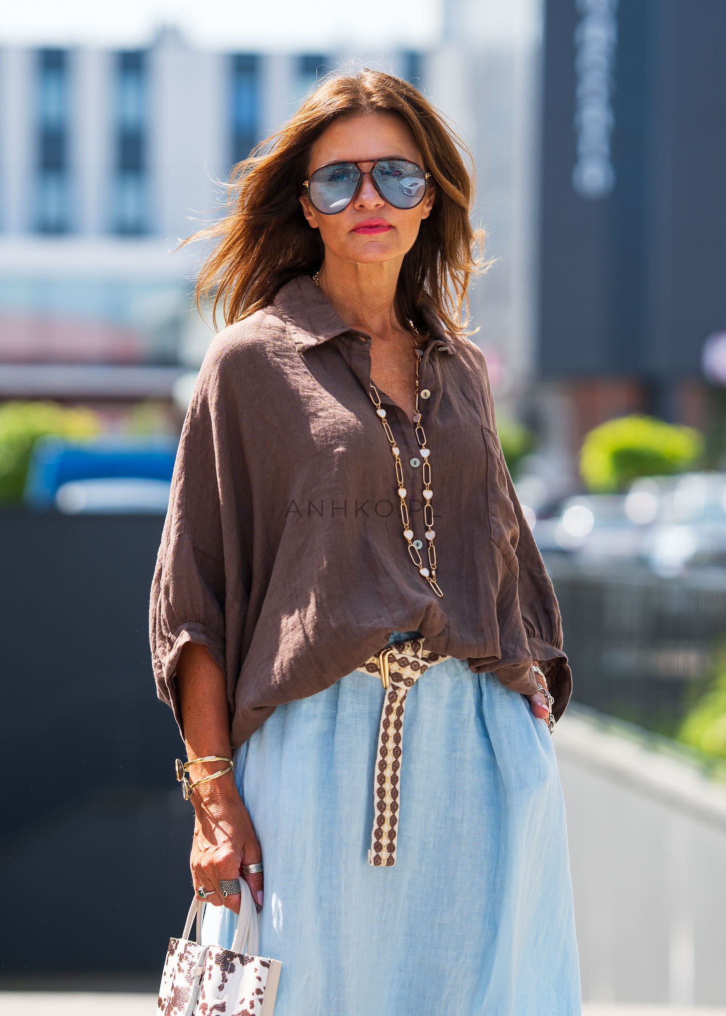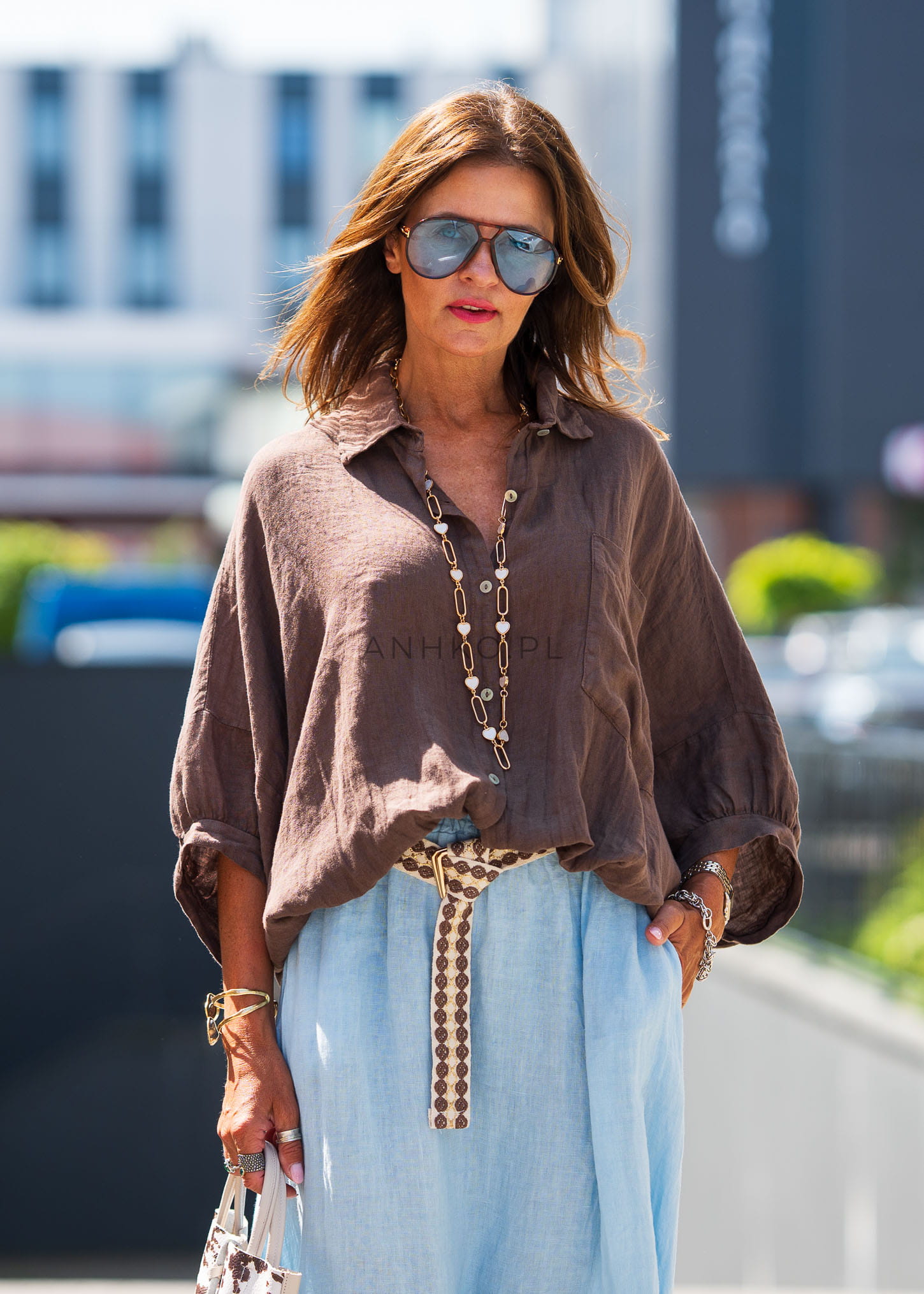 Świetnie wygląda z jasnymi spódnicami, lnianymi spodniami lub jeansami – możesz nosić ją luźno lub lekko podwiniętą dla bardziej dynamicznego efektu.