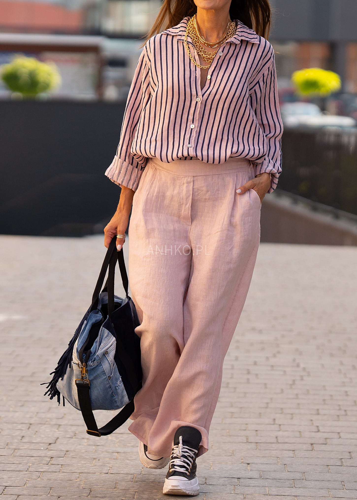 Model zapinany na guziki z klasycznym kołnierzykiem doskonale sprawdzi się zarówno w codziennych stylizacjach, jak i w bardziej dopracowanych zestawach. Przewiewny len, ponadczasowy wzór oraz możliwość podwijania rękawów sprawiają, że to uniwersalny element garderoby, który łatwo dopasujesz do wielu okazji.