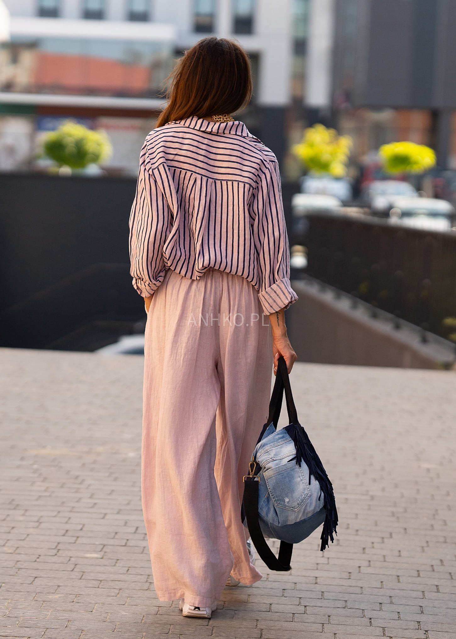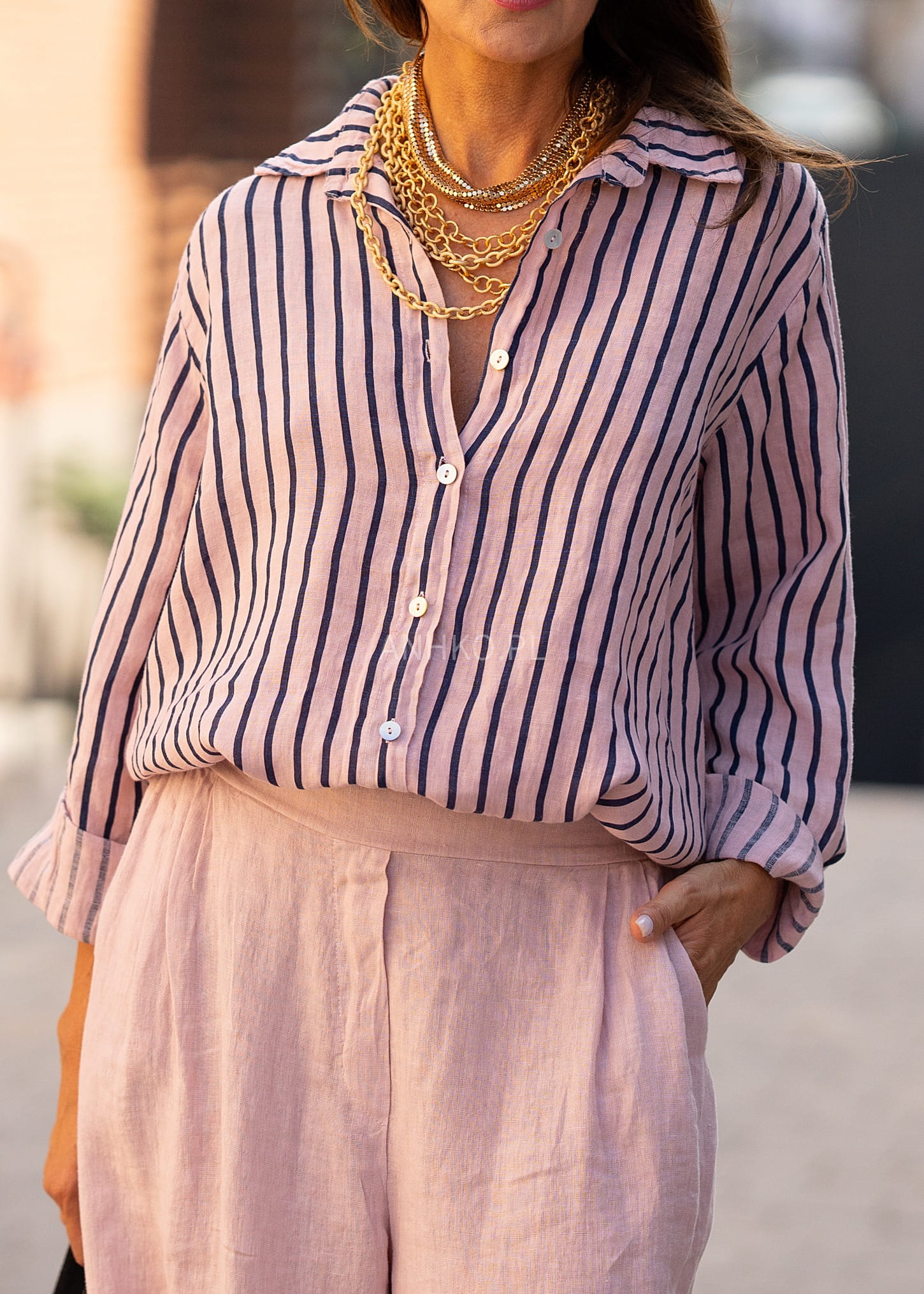 Lniana Koszula Atlanda Różowa w Paski