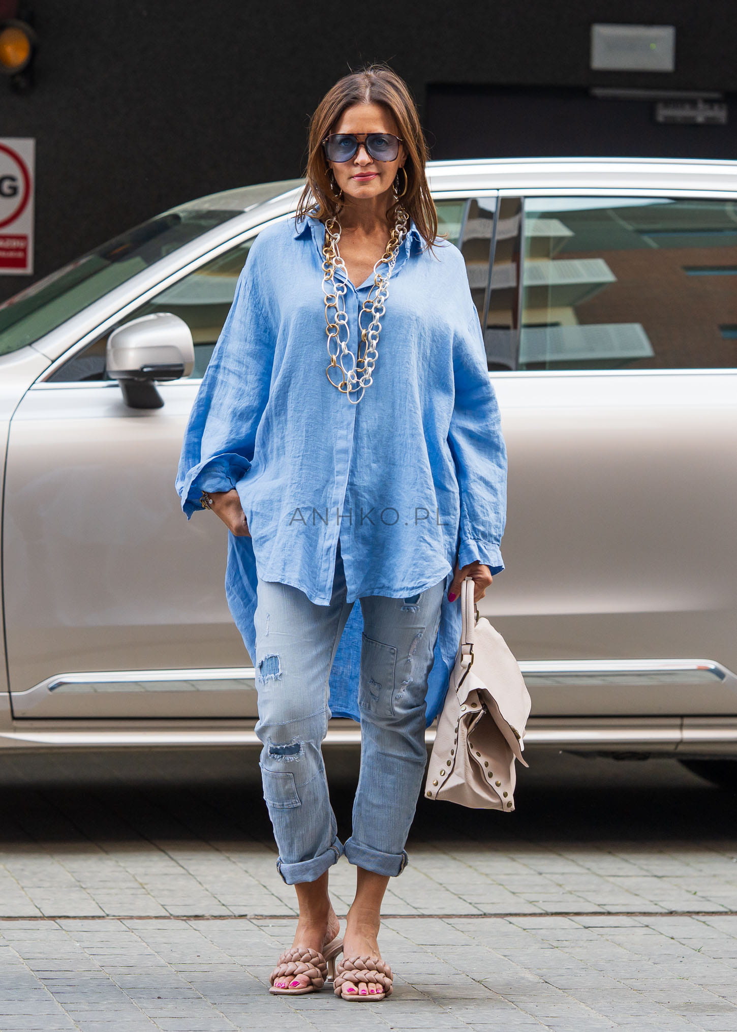 Koszulowa Tunika Lniana Sorra Jasnobrązowa - To koszulowa sukienka z lnu w ciepłym jasnobrązowym odcieniu. Z paskiem w talii i luźnym rękawem ¾, świetnie sprawdzi się na co dzień, do pracy i podczas letnich spacerów. Styl i komfort w jednym!