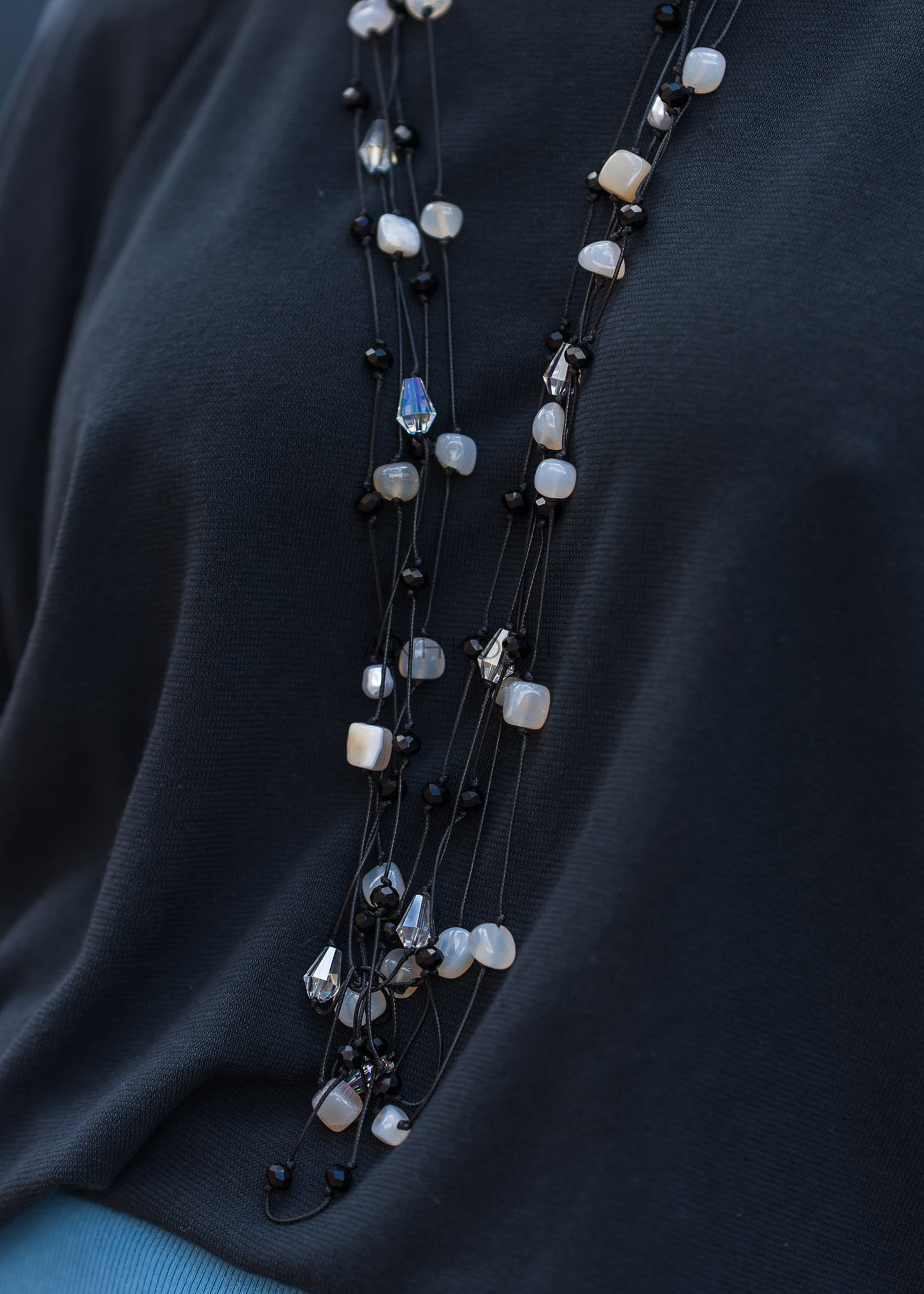Naszyjnik długi z kamyczkami i kryształkami Delicante w kolorze czarnym