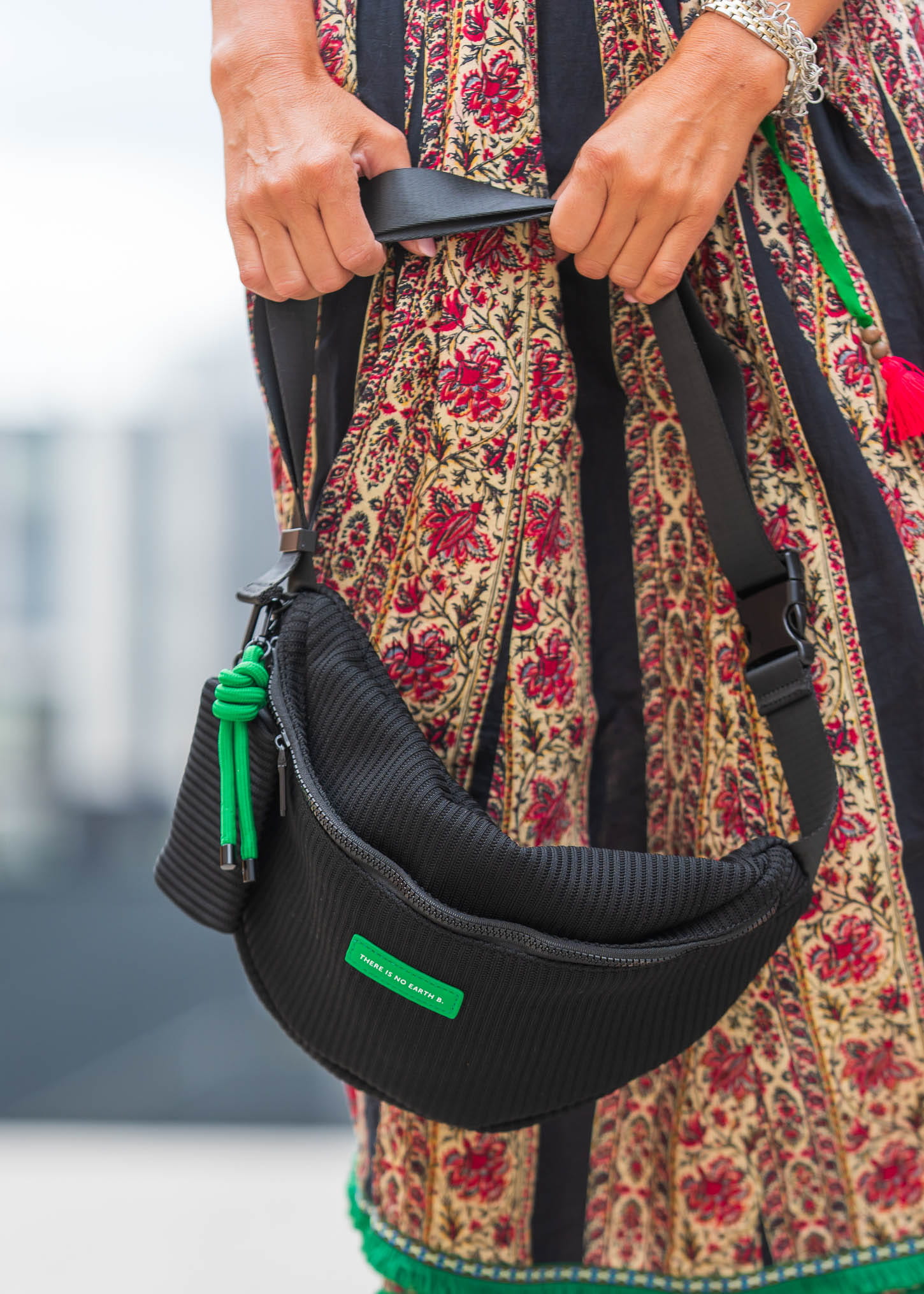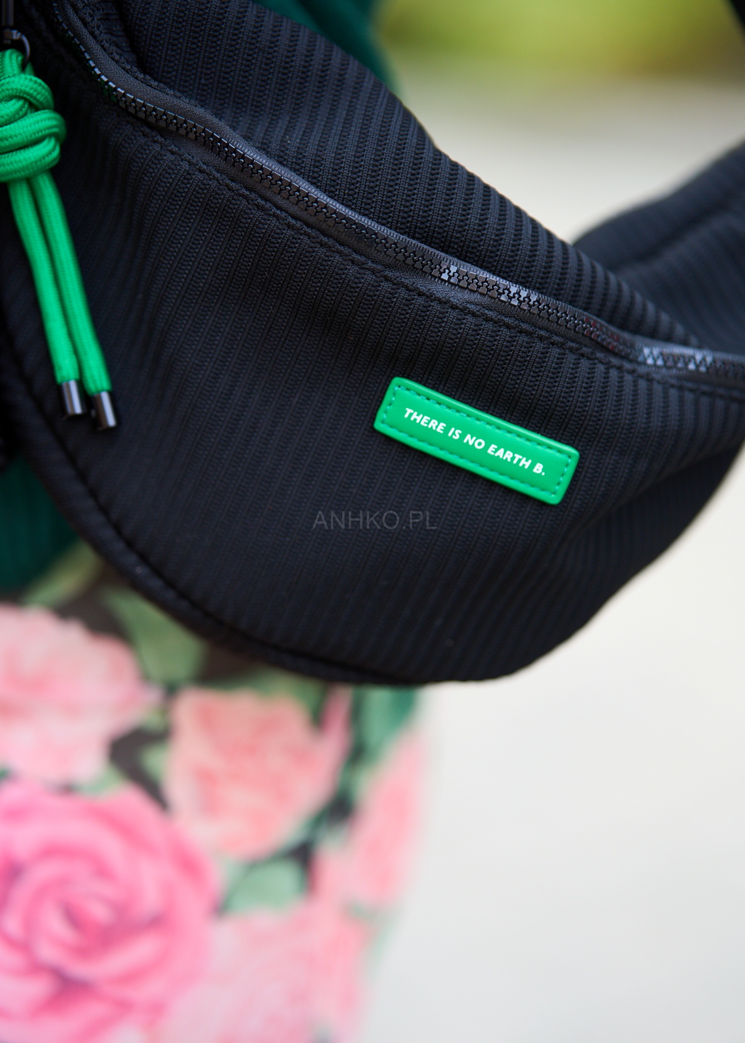 No Earth B to wyjątkowa nerka stworzona z myślą o wygodzie i wyrazistym stylu. Wykonana z lekkich, trwałych materiałów, doskonale sprawdzi się jako codzienna torebka na niezbędne rzeczy. Nerka zamykana jest na czarny suwak, a z przodu znajduje się ozdobna naszywka z napisem "There is no Earth B", która przyciąga spojrzenia i podkreśla indywidualny charakter dodatku.