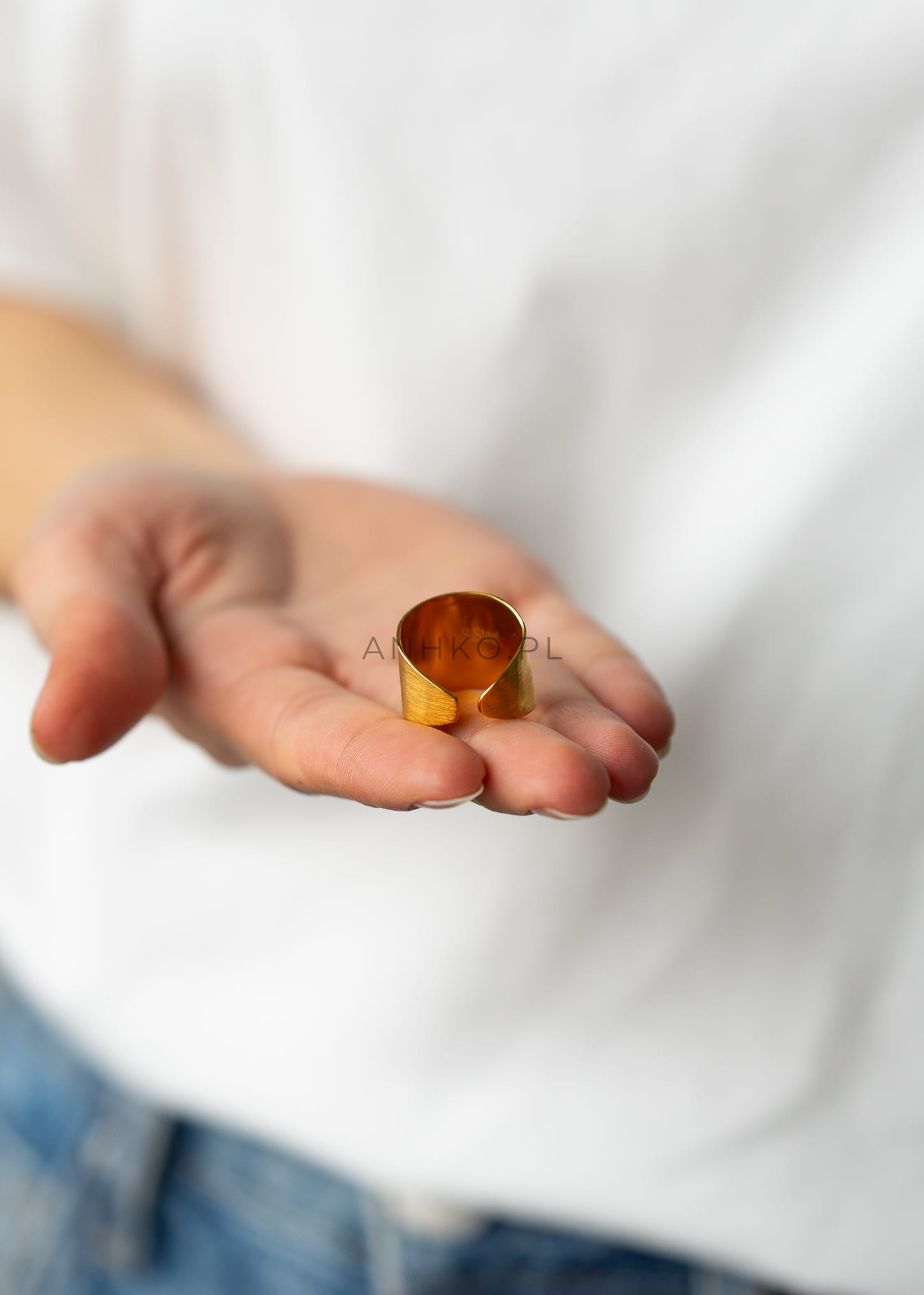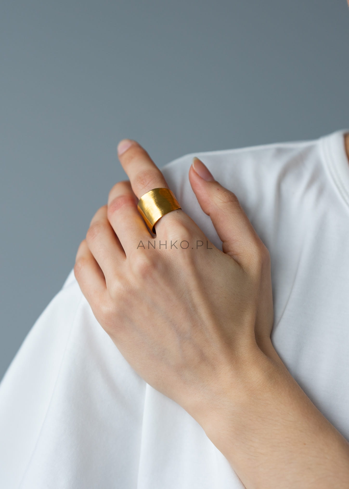 Pierścionek Made to kwintesencja nowoczesnej elegancji. Wykonany ze stali nierdzewnej, prezentuje się niezwykle stylowo i solidnie. Złoty kolor nadaje mu luksusowego charakteru, a prosty design z pofalowaną formą z szerokim profilem sprawia, że jest unikatowy i pasuje do każdej stylizacji. Rozszerzana konstrukcja umożliwia łatwe dopasowanie do każdego rozmiaru palca, co czyni go nie tylko pięknym, ale również praktycznym dodatkiem.