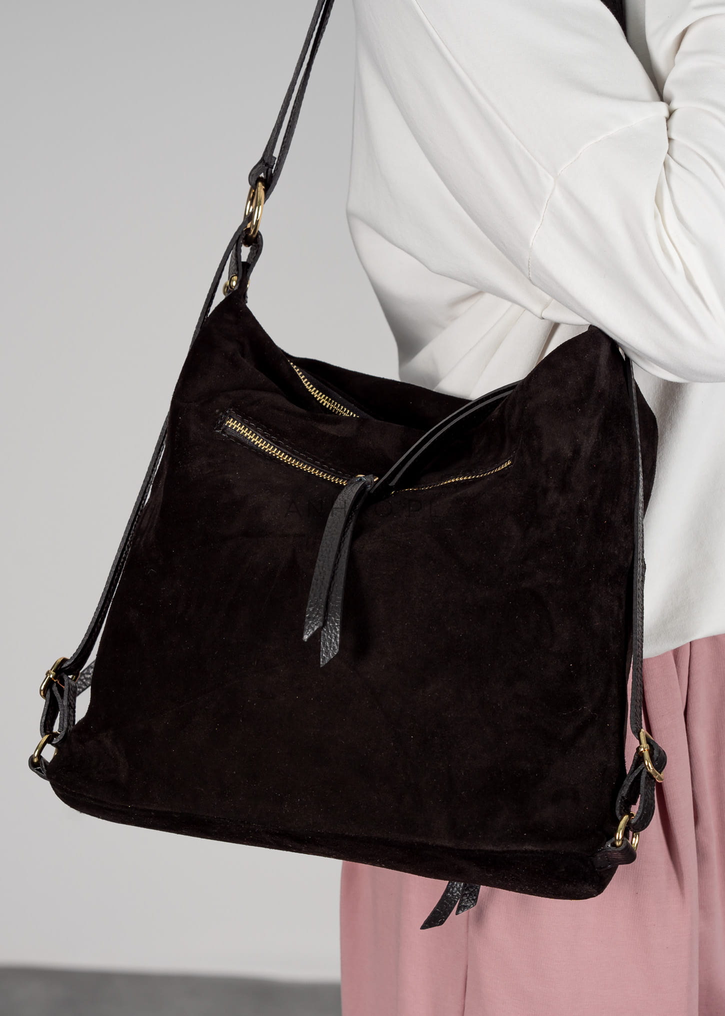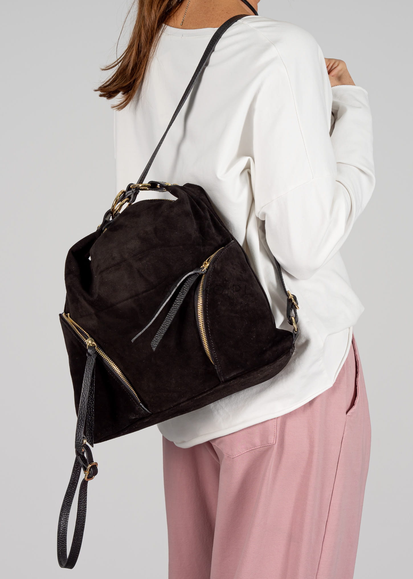 - Torebka/plecak z zamszowej, prawdziwej cielęcej skóry