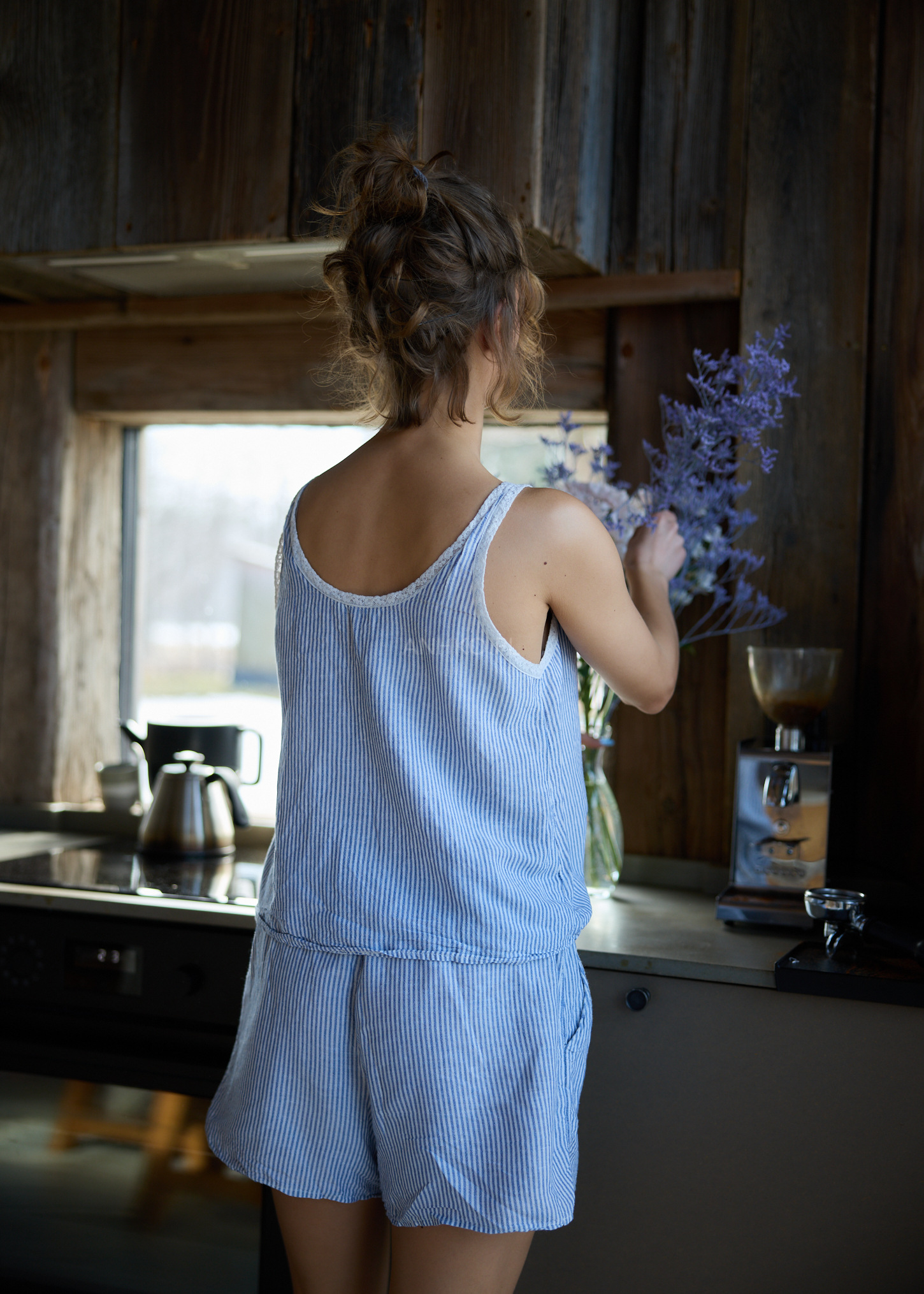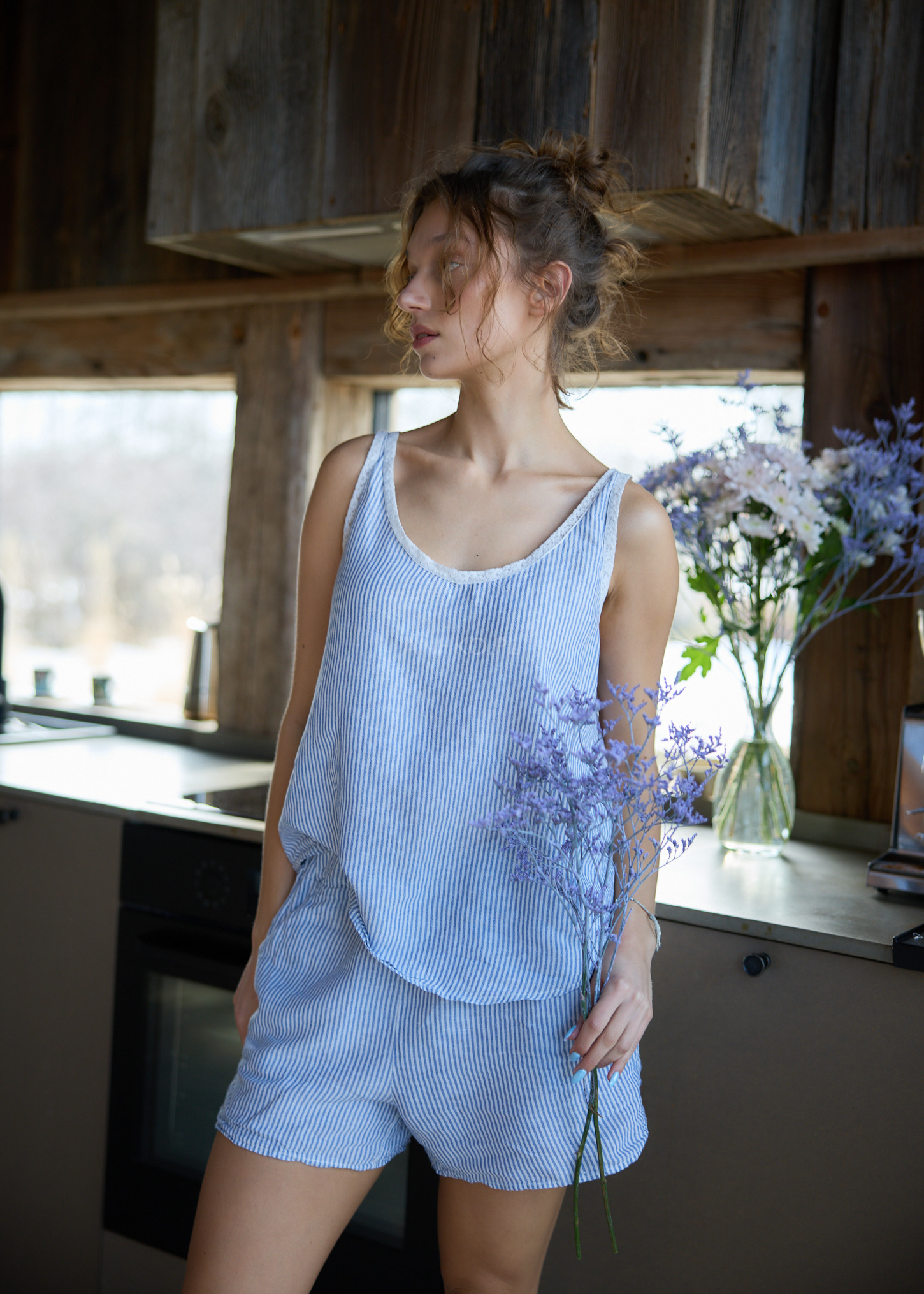 Bluzka Piżamowa Sleepy w Niebieskie Paski - Ta góra od piżamy to idealne połączenie wygody i elegancji. Wykonana z naturalnych i wysokiej jakości materiałów, zapewnia komfort noszenia i trwałość.