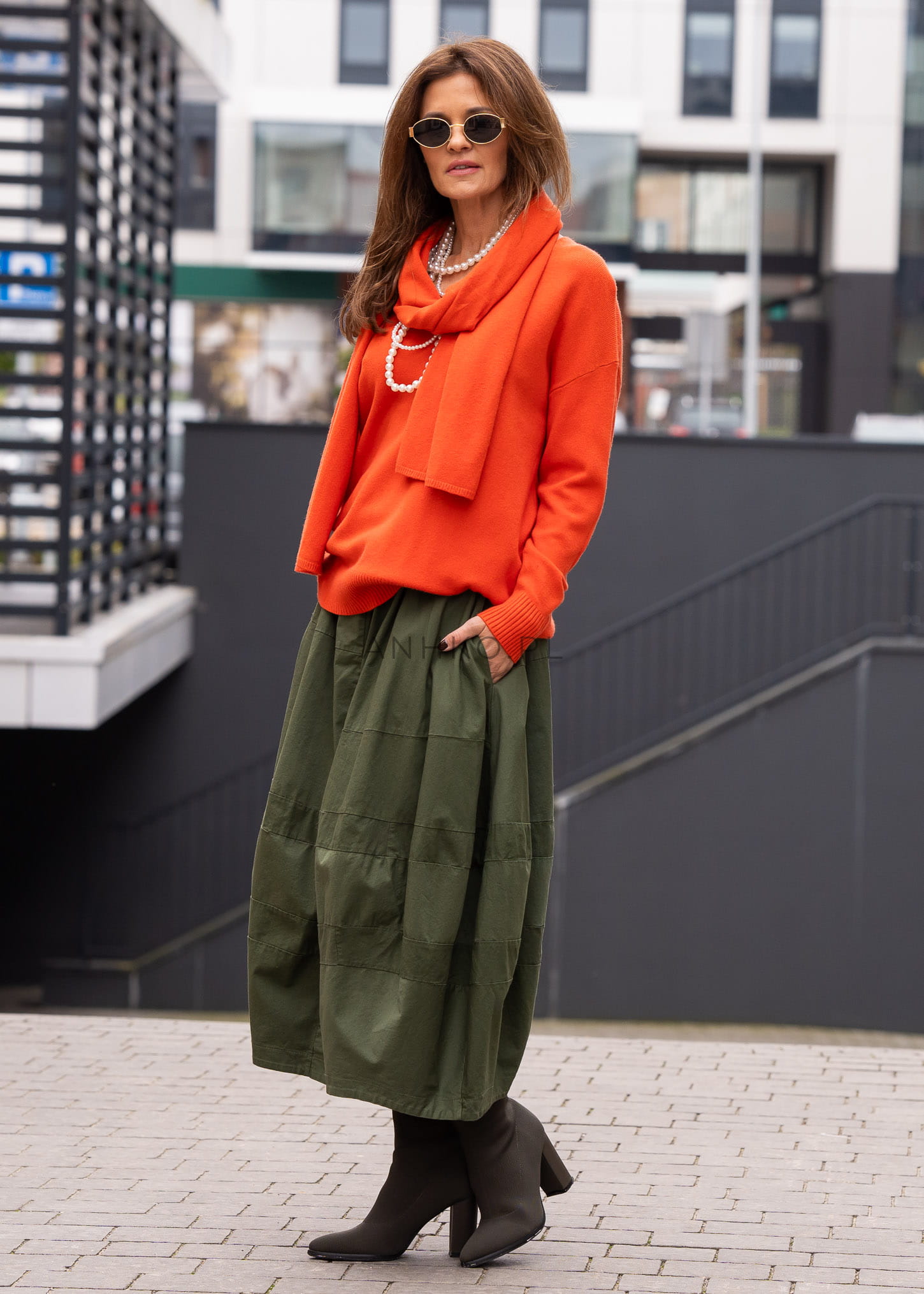 Sweter z Szalem Intes Pomarańczowy - Ten pomarańczowy sweter z dopasowanym szalem to komplet, który łączy styl z funkcjonalnością. Wykonany z wysokiej jakości materiałów, gwarantuje komfort i elegancję na co dzień.