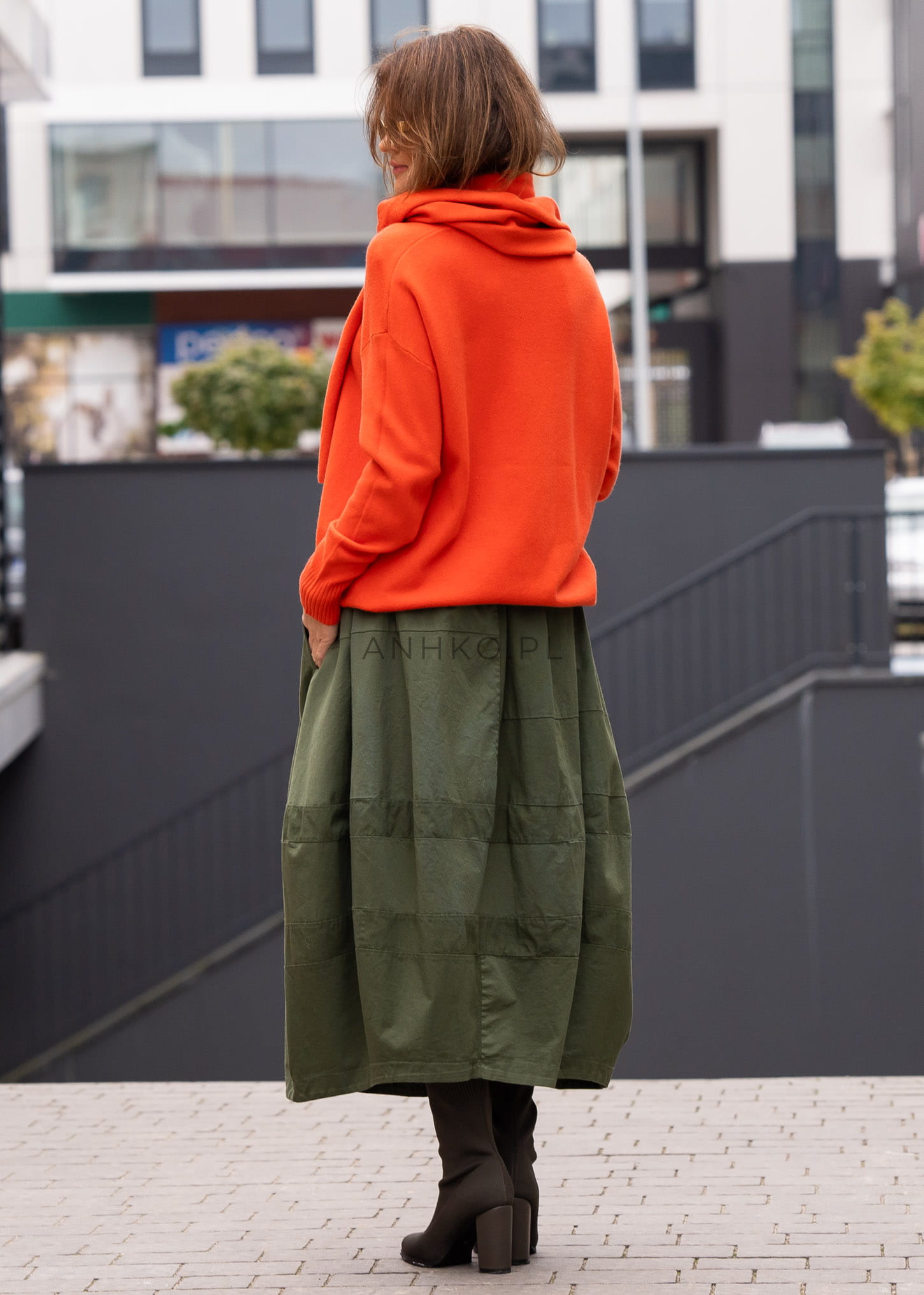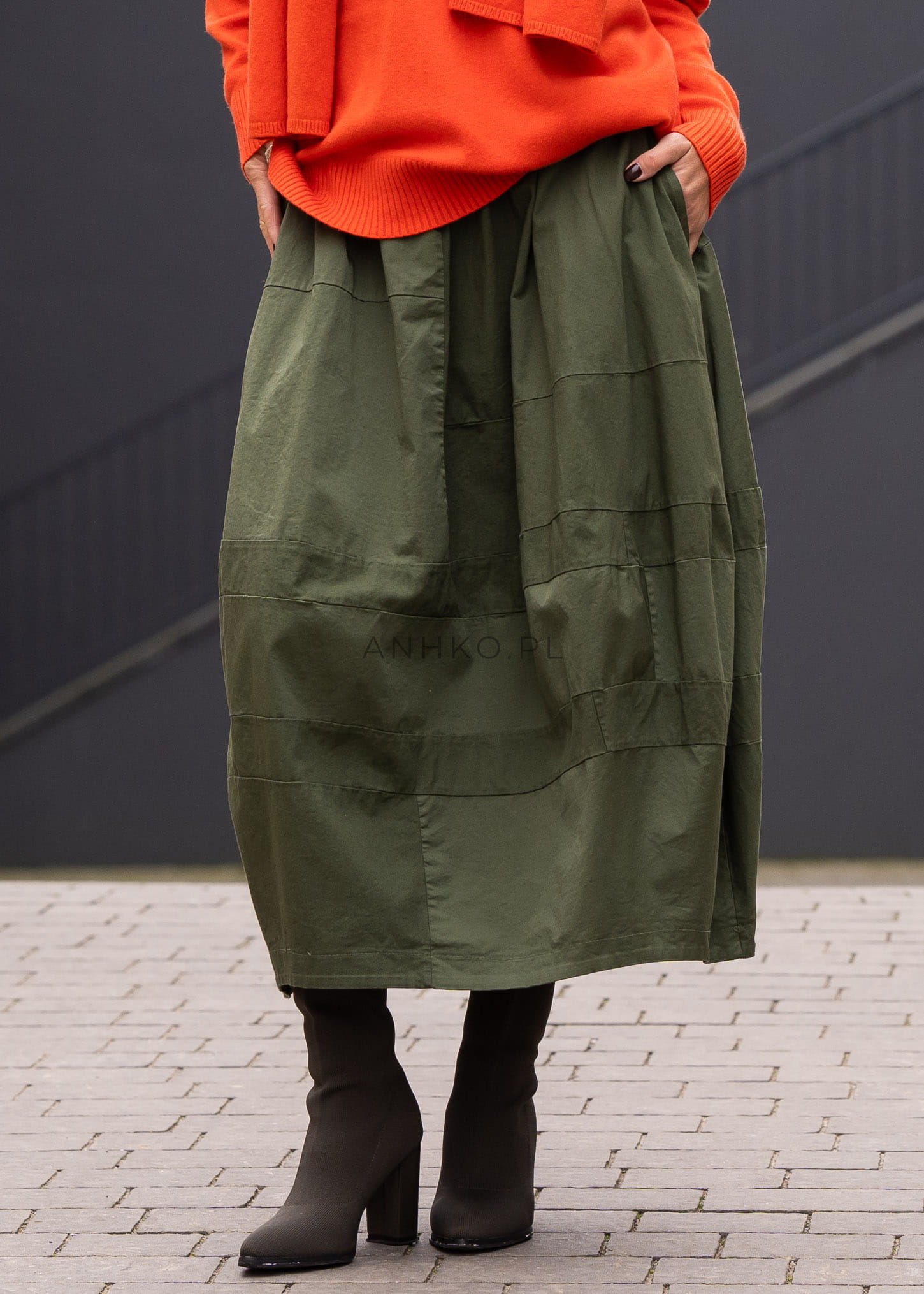 O kroju bombki z ozdobnymi przeszyciami, wykonana ze sztywniejszego materiału i wyposażona w gumkę w pasie. Jednolity designe pozwala dostosować spódnicę do różnorodnych stylizacji i upodobań. To elegancka opcja dla osób ceniących sobie klasyczny fason z dodatkiem ozdobnych detali, a jednocześnie pragnących wybierać spośród różnorodnych kolorów. Spódnica ta nadaje się zarówno na codzienny strój, jak i na bardziej formalne okazje.