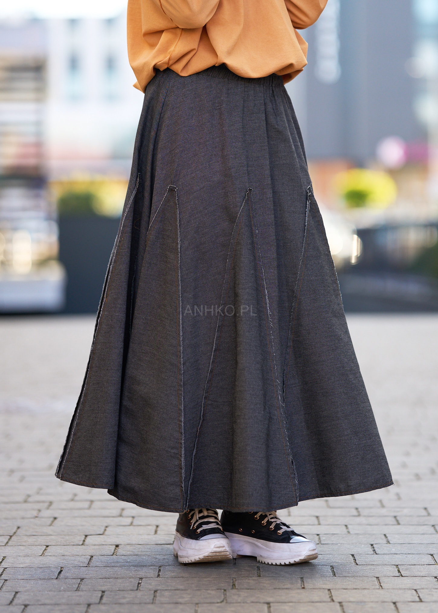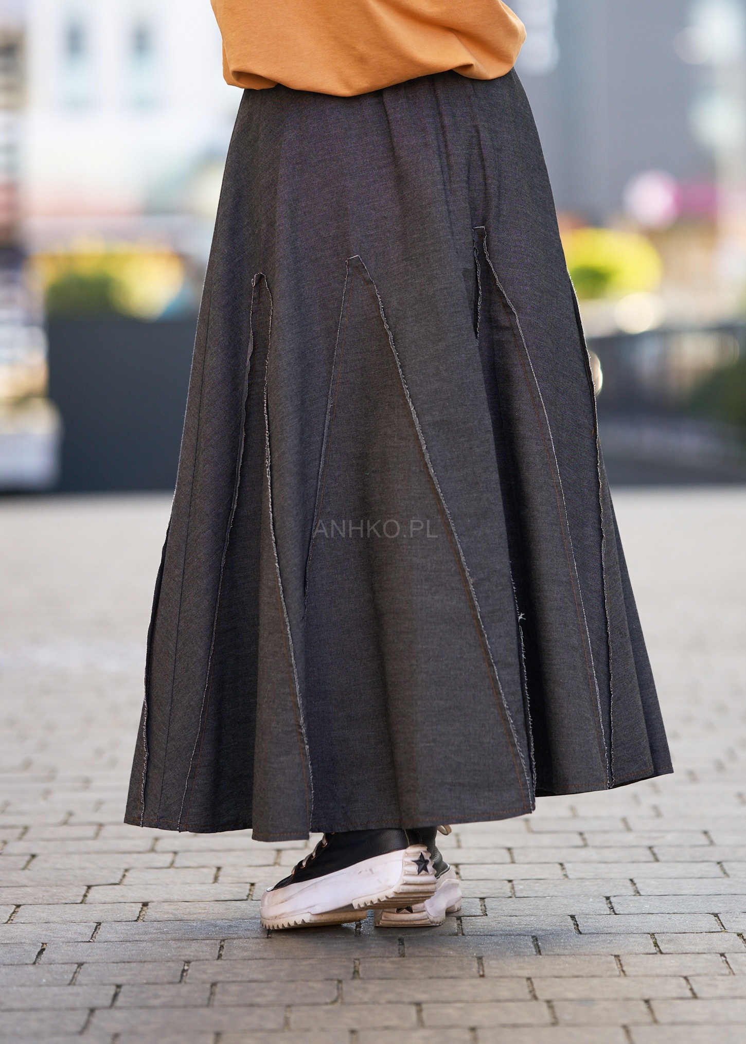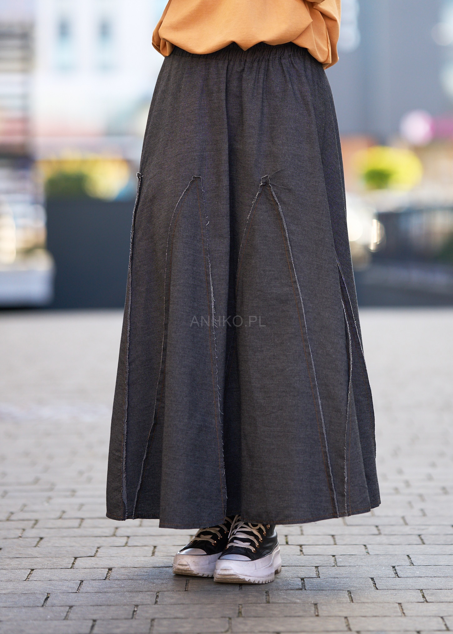 Wyjątkowa propozycja dla kobiet, które cenią wygodę i nietuzinkowy styl. Wykonana z miękkiej, przewiewnej tkaniny w odcieniu grafitu, wyróżnia się oryginalnymi, surowymi przeszyciami i lekko rozkloszowanym krojem. Elastyczny pas w talii zapewnia komfort noszenia i dopasowanie do sylwetki. Spódnica świetnie komponuje się zarówno z t-shirtem i sneakersami, jak i z elegancką koszulą czy swetrem oversize. Idealna na co dzień, do pracy w stylu casual lub na weekendowe spacery po mieście.