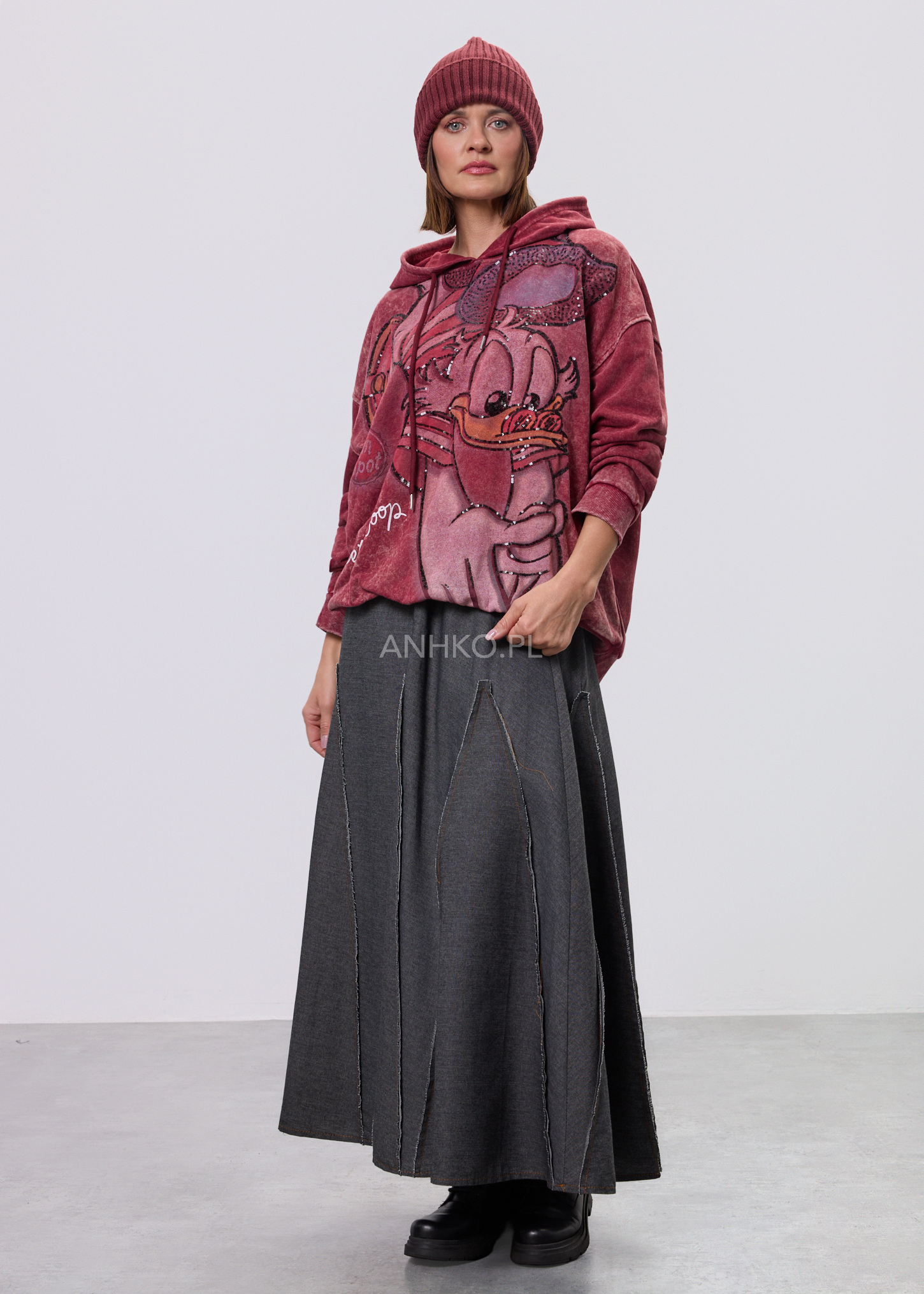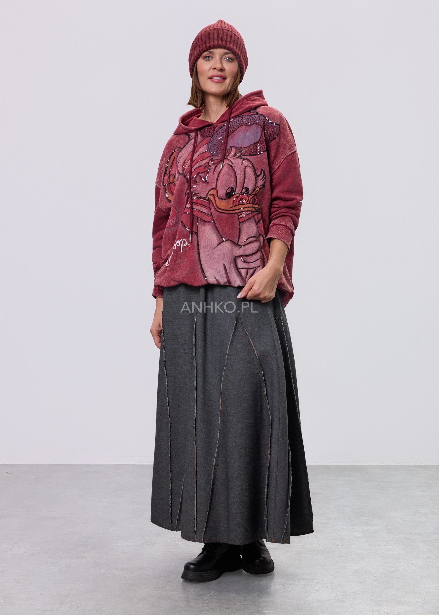 Bluza Artemis Dolds Bordowa - Wyrazista bluza z kapturem o luźnym kroju, ozdobiona efektowną grafiką i połyskującymi detalami. Komfortowa, miękka i elastyczna, idealna do codziennych stylizacji z modowym charakterem. Przyciąga uwagę i podkreśla indywidualny styl.