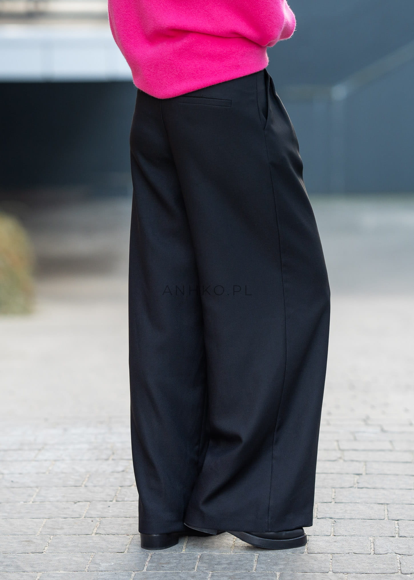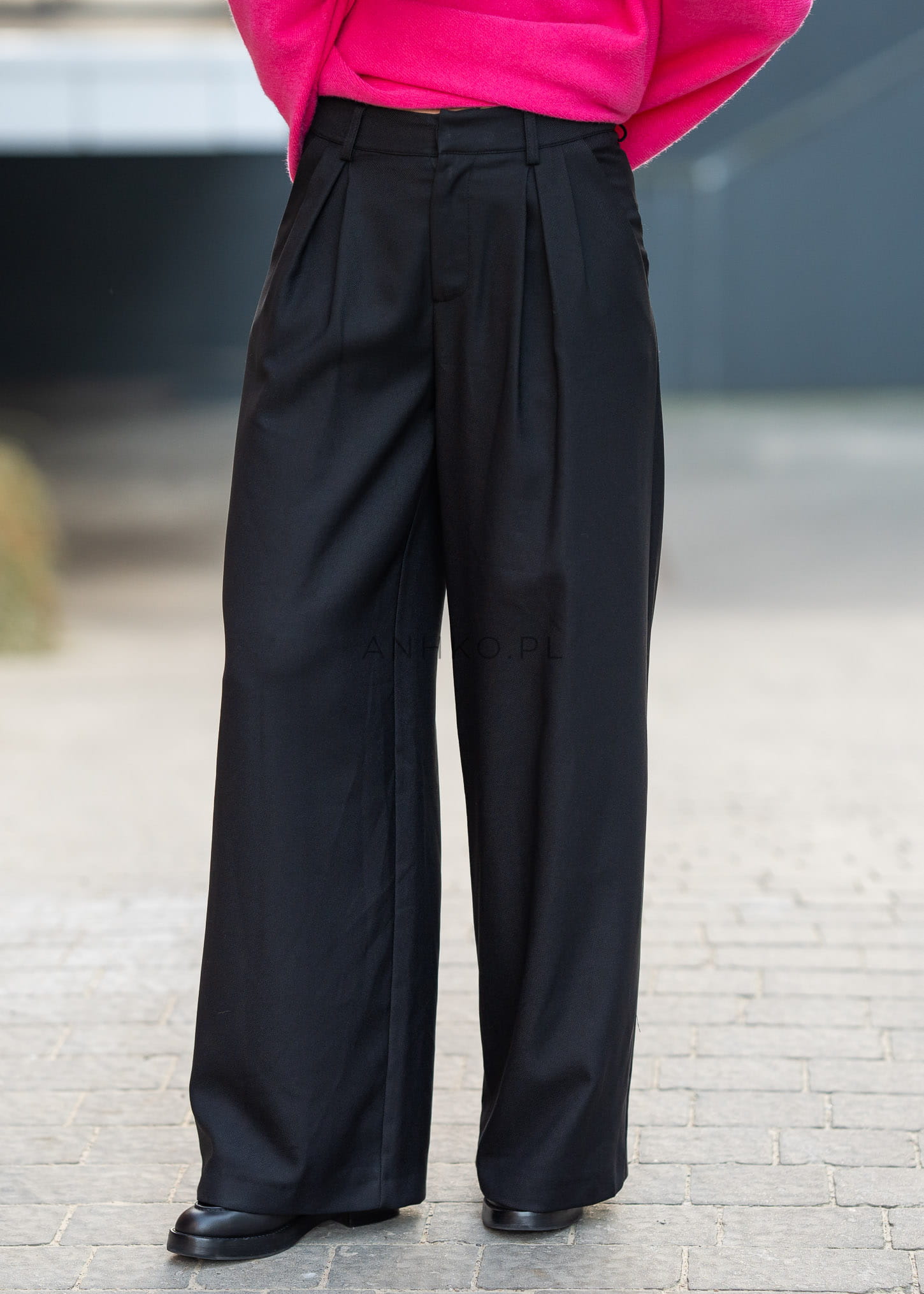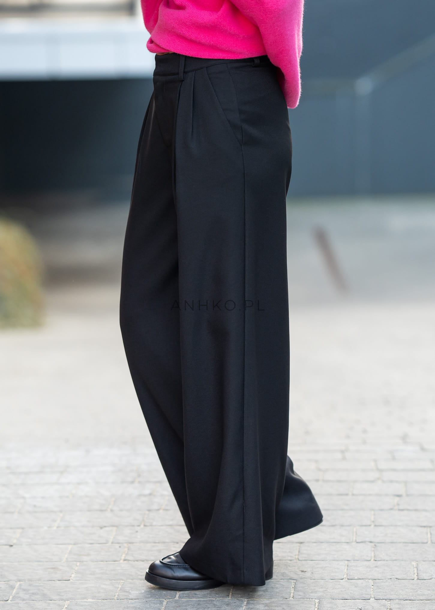 Spodnie stworzone z myślą o kobietach ceniących komfort i nowoczesną elegancję. Szeroka nogawka oraz miękko układający się materiał nadają sylwetce lekkości i swobodnego charakteru. Klasyczna czerń sprawia, że model doskonale komponuje się zarówno z topami i bluzkami, jak i z oversize’owymi swetrami, koszulami czy marynarkami. Spodnie sprawdzą się na co dzień, do pracy w luźniejszym stylu, na spotkania, wyjścia do miasta czy wieczorne stylizacje. To ponadczasowa baza garderoby, która pozwala tworzyć wiele różnorodnych zestawów – od casualowych po bardziej eleganckie.