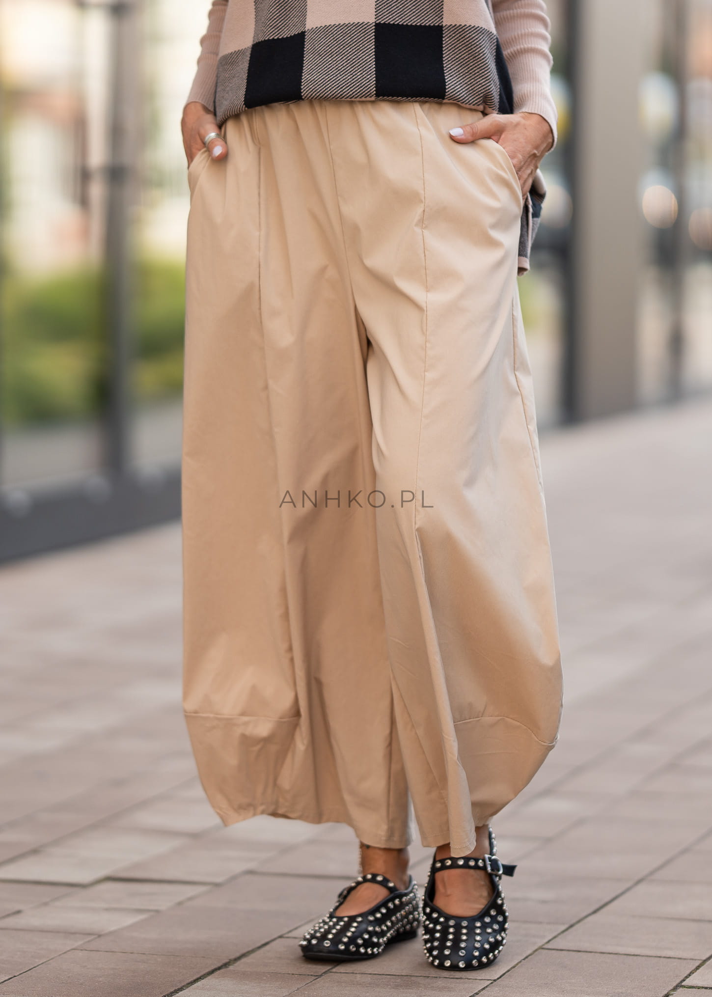 Beżowy odcień sprawia, że model świetnie odnajduje się w minimalistycznych stylizacjach, ale równie dobrze współgra z bardziej wyrazistymi elementami garderoby. Noś je z dopasowanym topem, oversize’ową koszulą albo krótkim swetrem – tworząc look, który balansuje między wygodą a modowym twistem.
