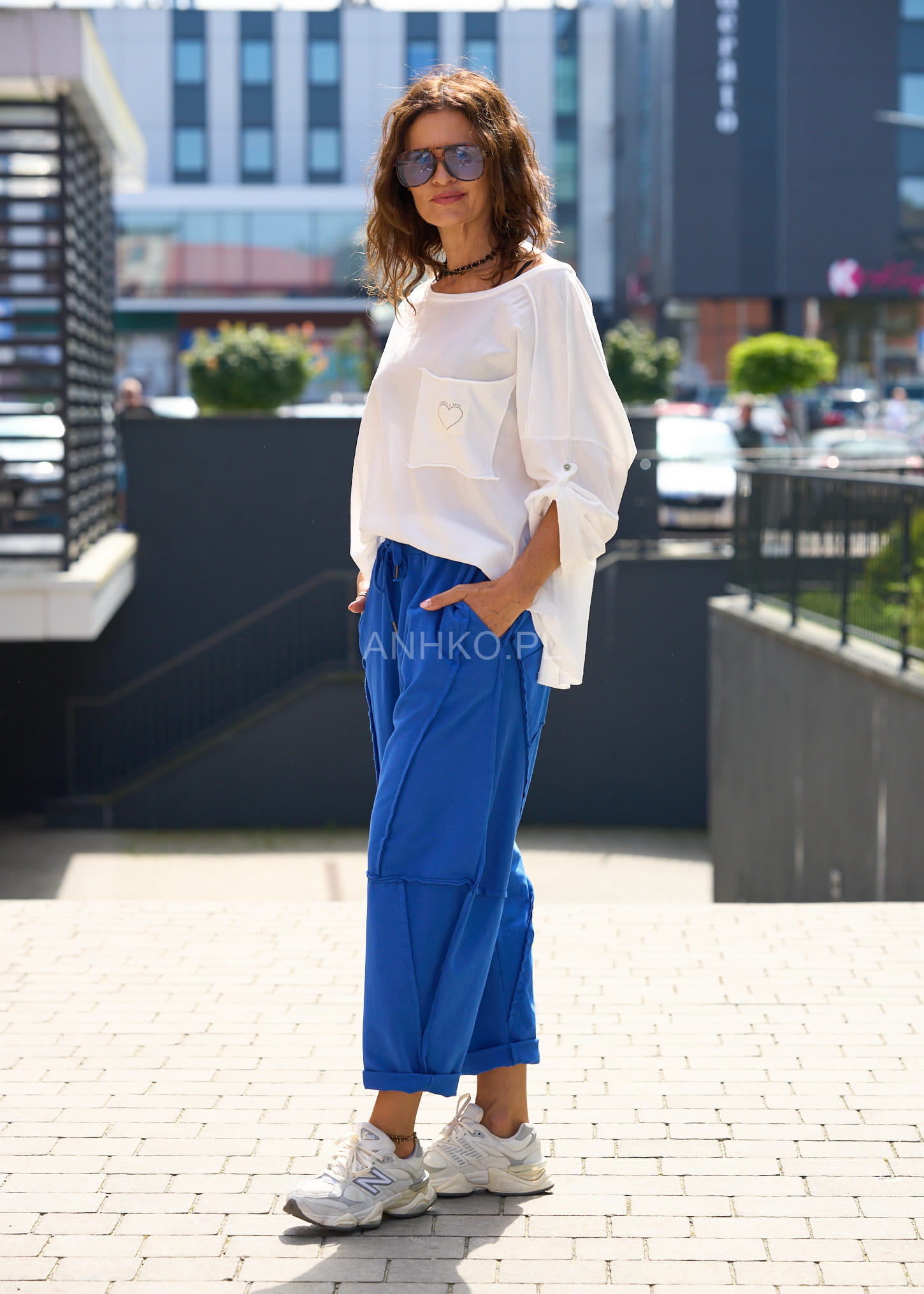 Bluzka Blush Amore Biała - Romantyczna, oversize’owa bluzka w białym kolorze z kieszonką i subtelnym haftem serca. Lekka, wygodna i wykonana z 100% bawełny – idealna na co dzień i wyjątkowe chwile.