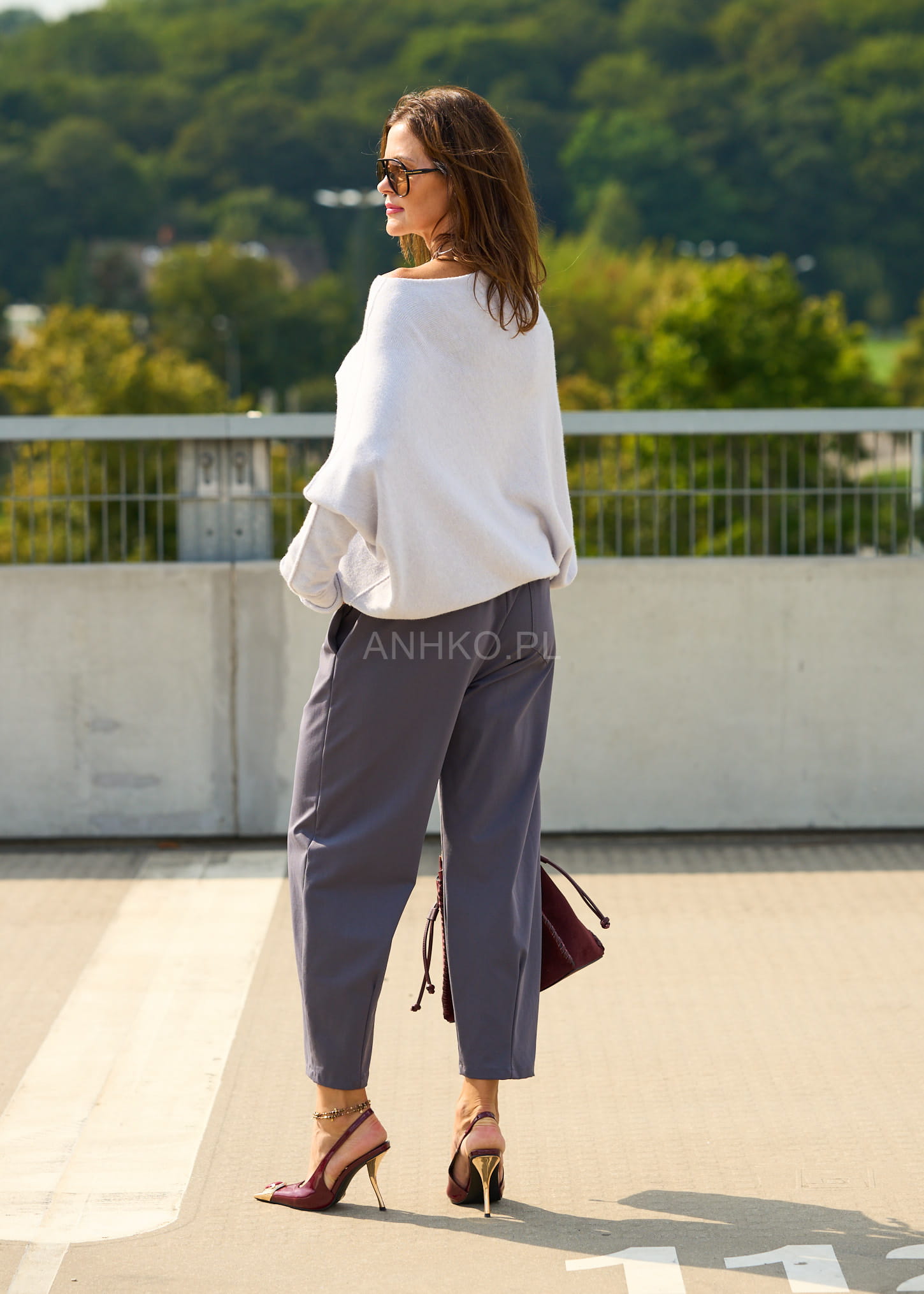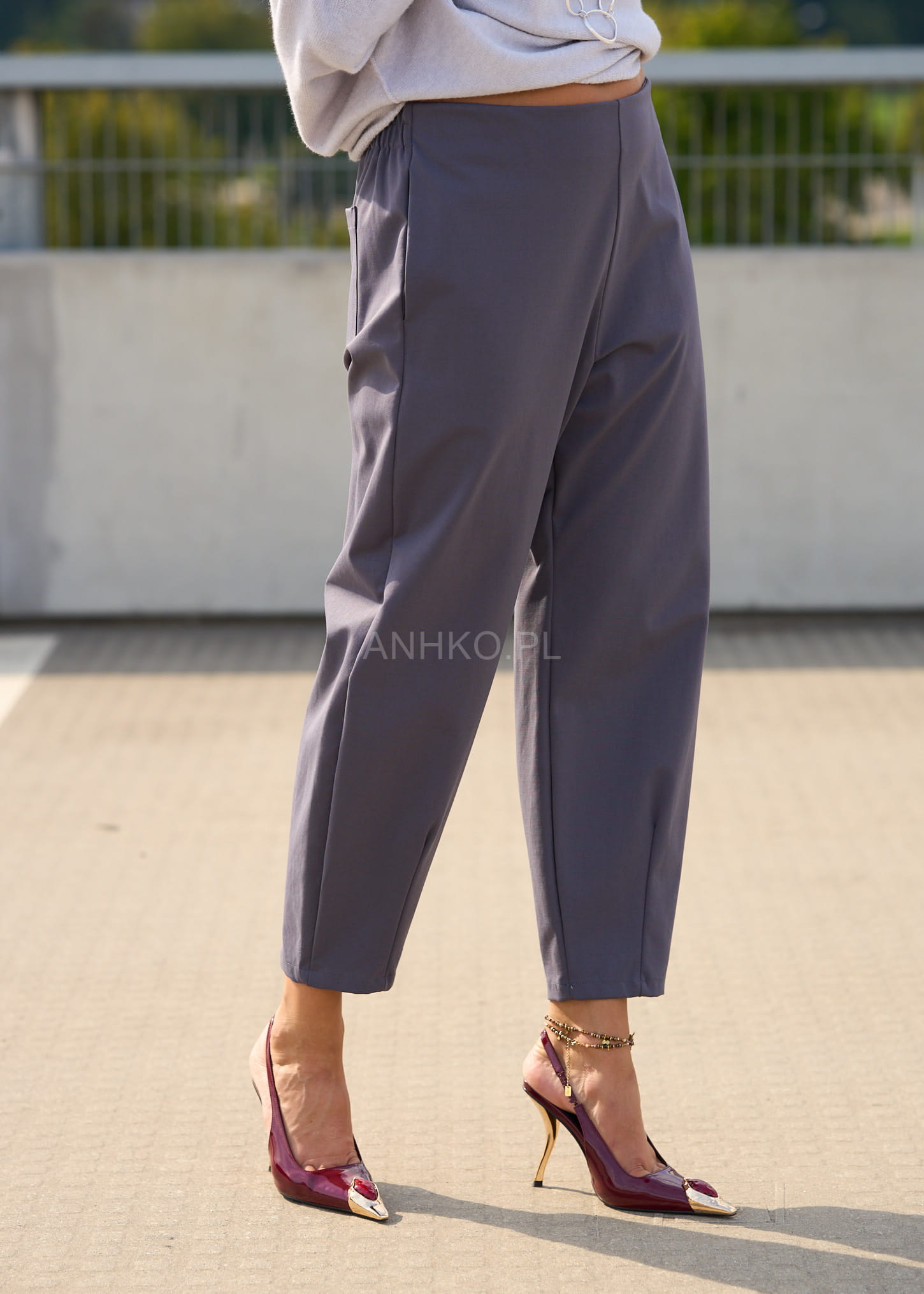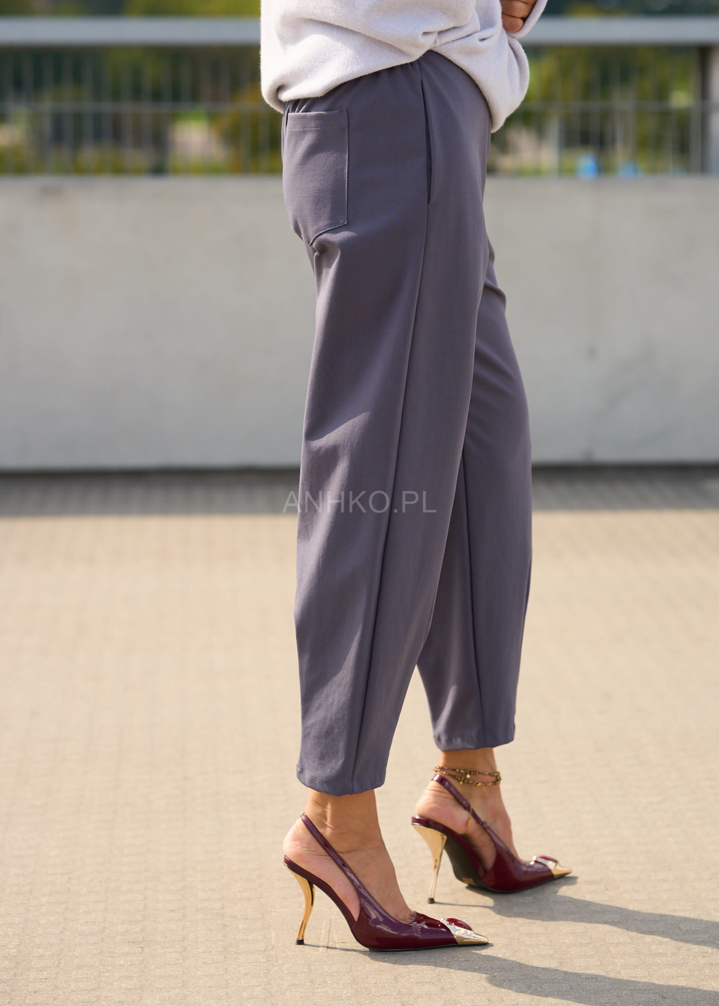 Model w odcieniu dark grey to ponadczasowa baza do wielu stylizacji – od casualowych po bardziej dopracowane zestawy. Miękka, elastyczna tkanina, zwężany fason i uniwersalny kolor sprawiają, że spodnie świetnie komponują się zarówno z dzianiną, jak i elegancką koszulą czy marynarką.
