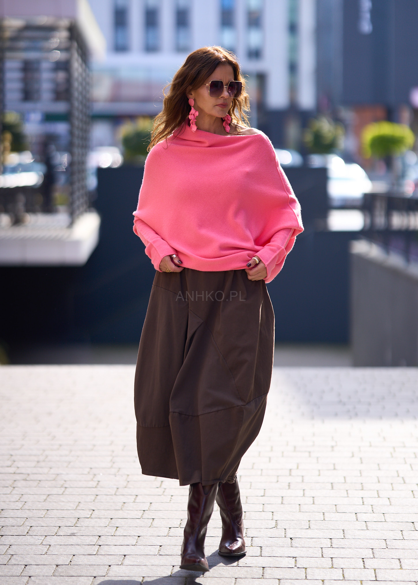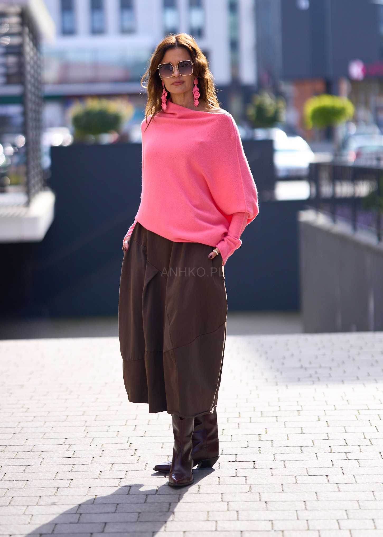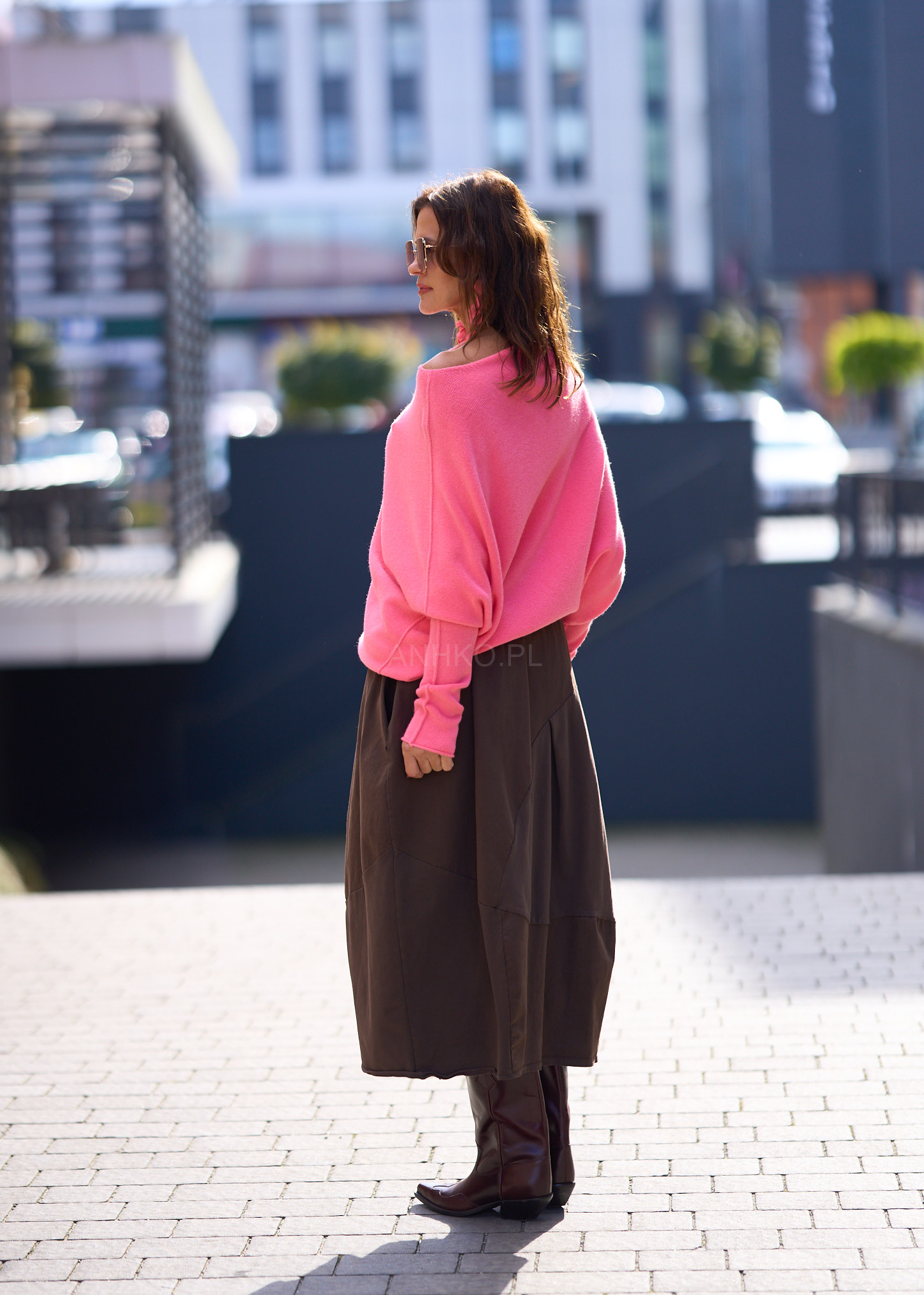 Intensywny różowy kolor przyciąga spojrzenia i ożywia każdą stylizację, nadając jej świeżości i energii. Oversize’owy fason zapewnia wygodę przez cały dzień, a asymetryczne wykończenie dodaje całości dynamicznego charakteru. To idealna baza zarówno do miejskich zestawów, jak i bardziej wyrazistych stylizacji z biżuterią czy spódnicą.