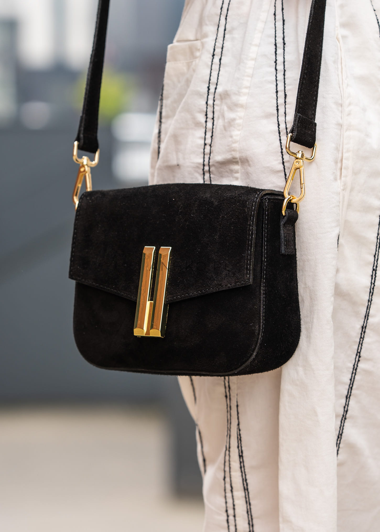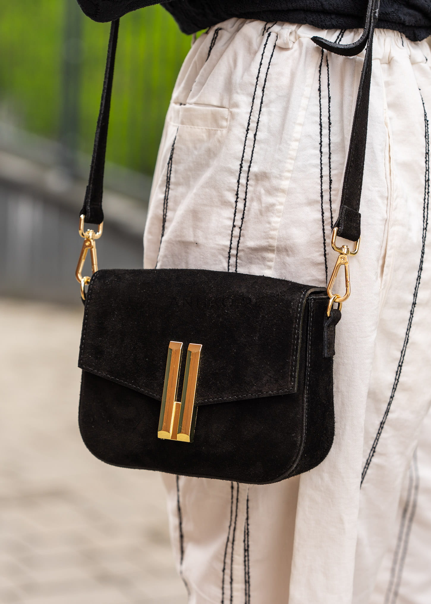 Torebka zamszowa z eleganckim zapięciem – Two Stripes Czarna